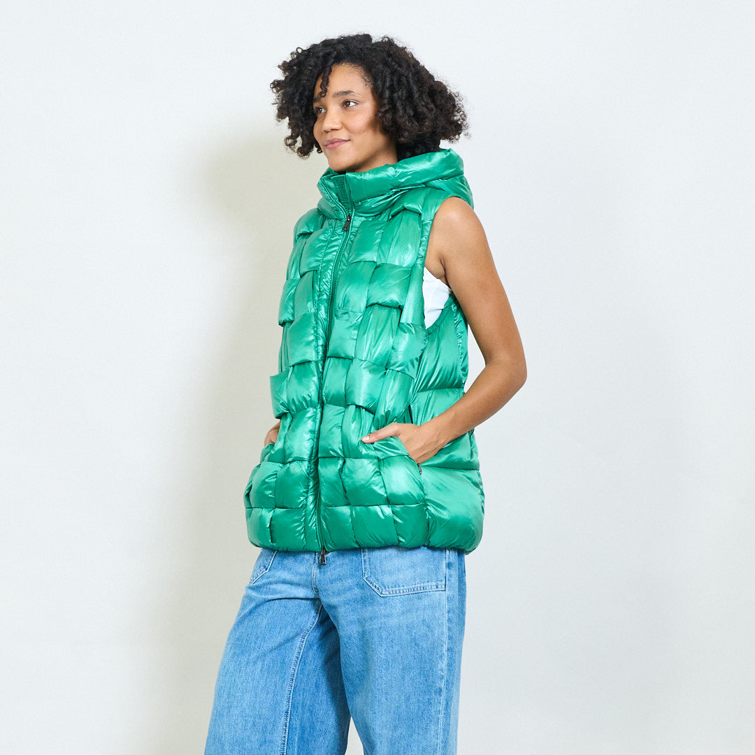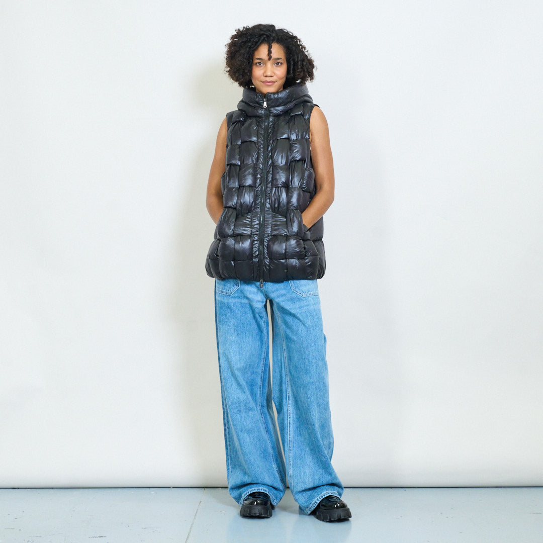 - Жирный жилет с жирным без рукавов с кубическим стеганием