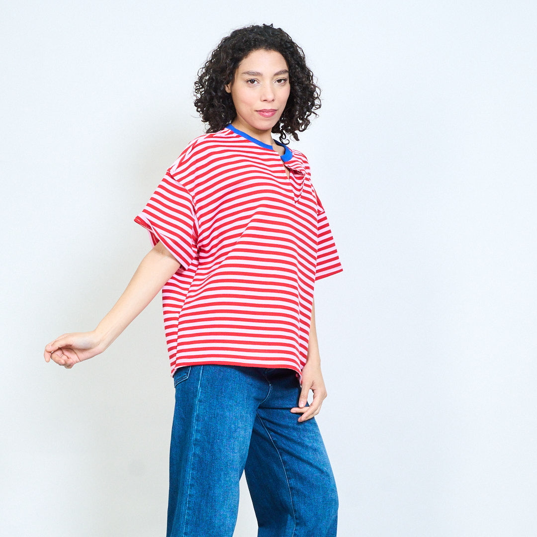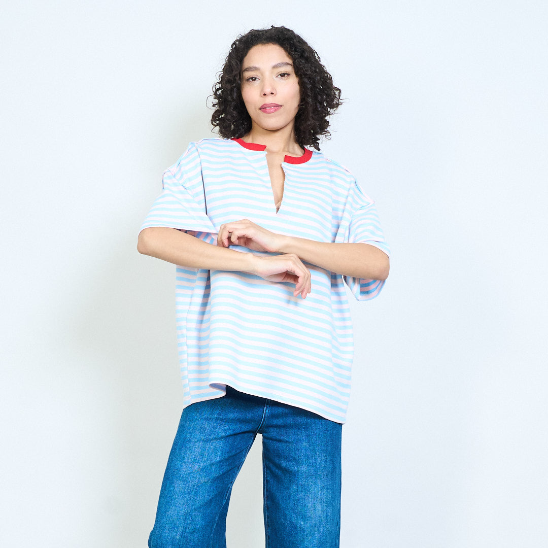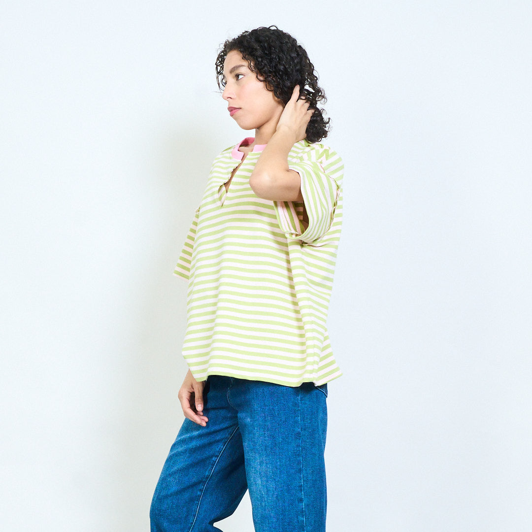 • Повседневный топ с короткими рукавами и классическим узором в горизонтальную полоску.