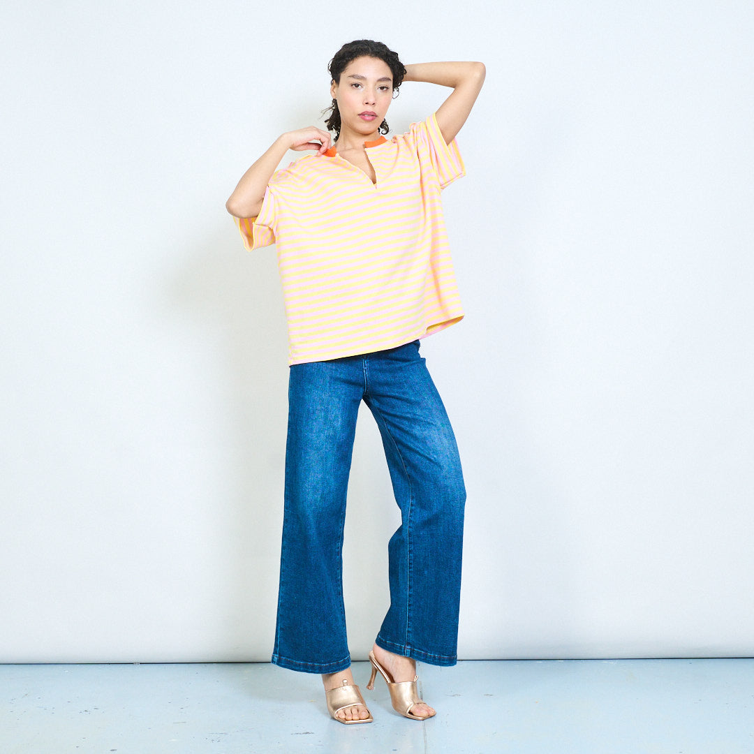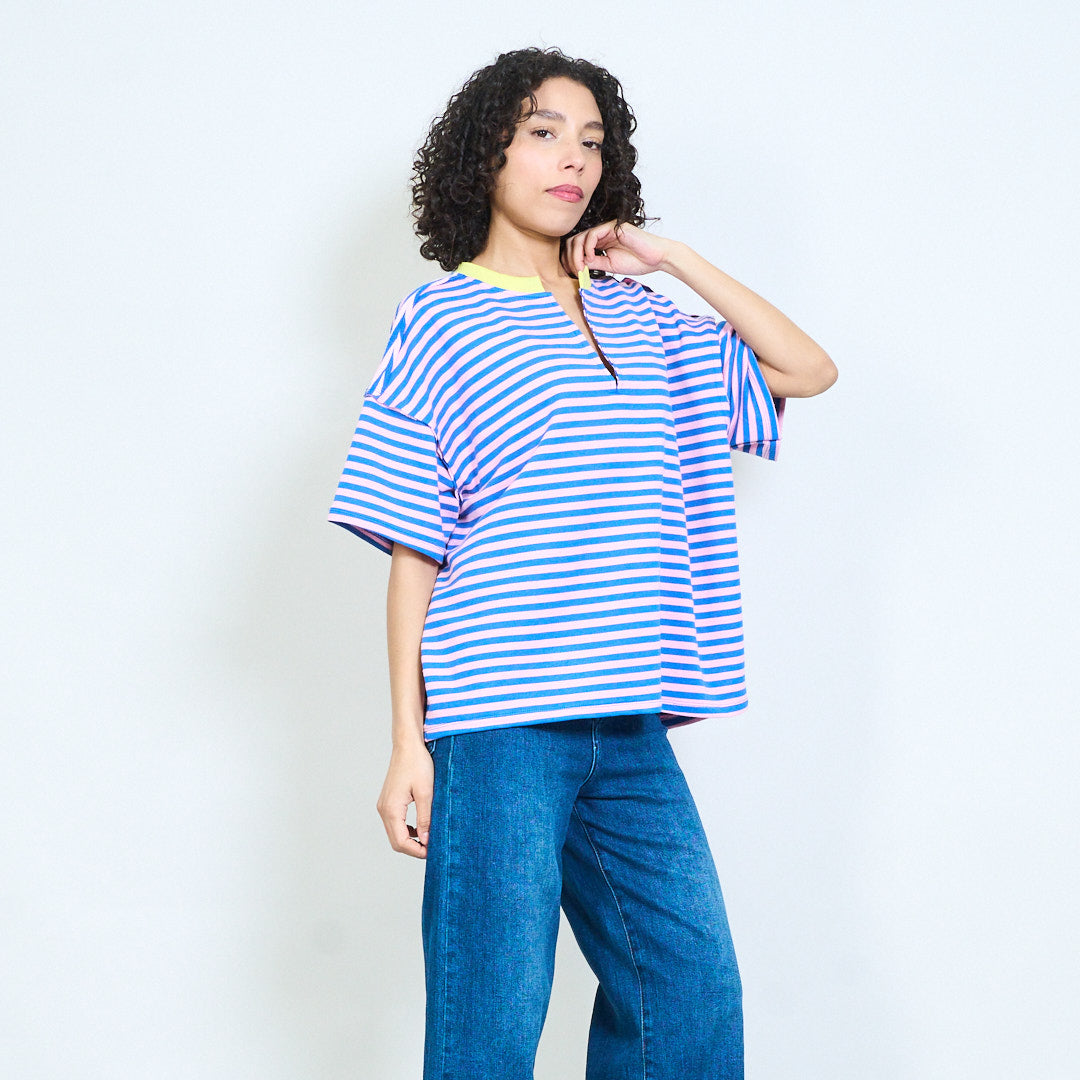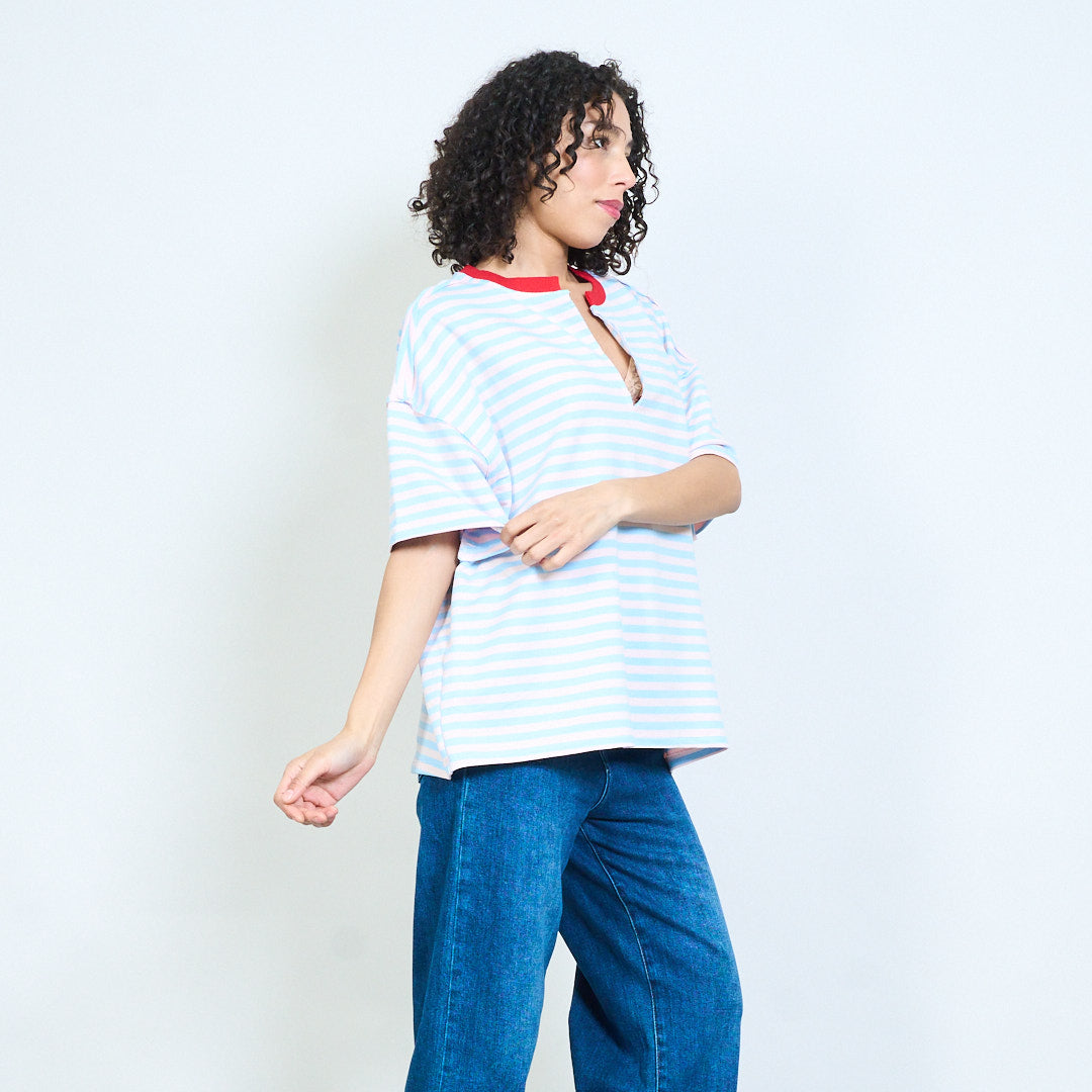 • Повседневный топ с короткими рукавами и классическим узором в горизонтальную полоску.