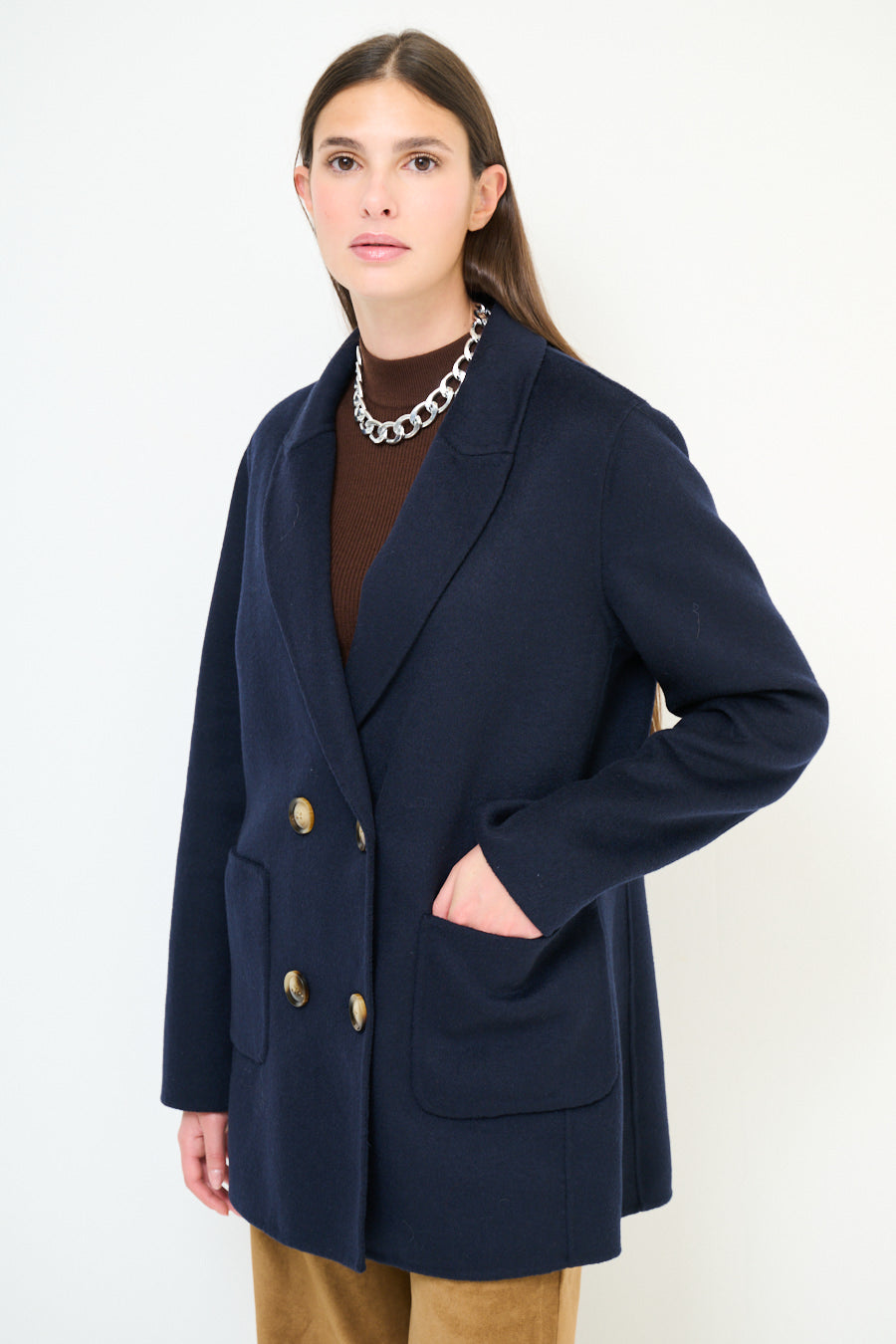 Двубортный пиджак строгого кроя с накладными карманами оптом