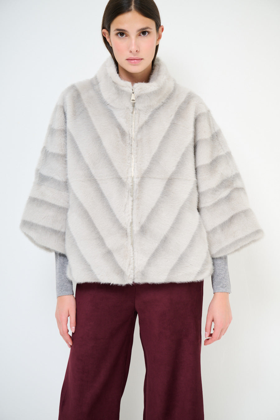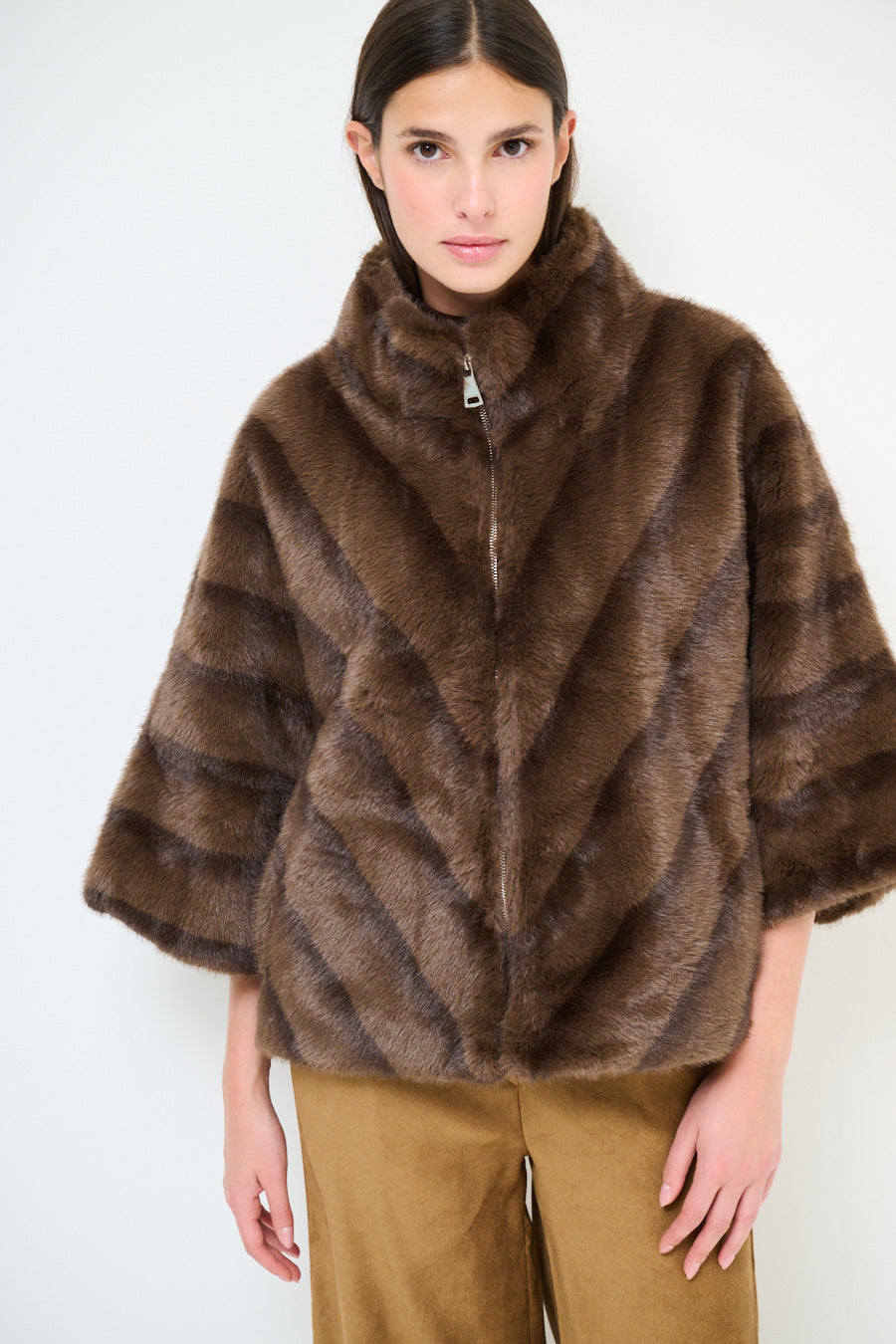 - Мягкая отделка из искусственного меха с тонким полосатым узором для создания шикарного эффекта.