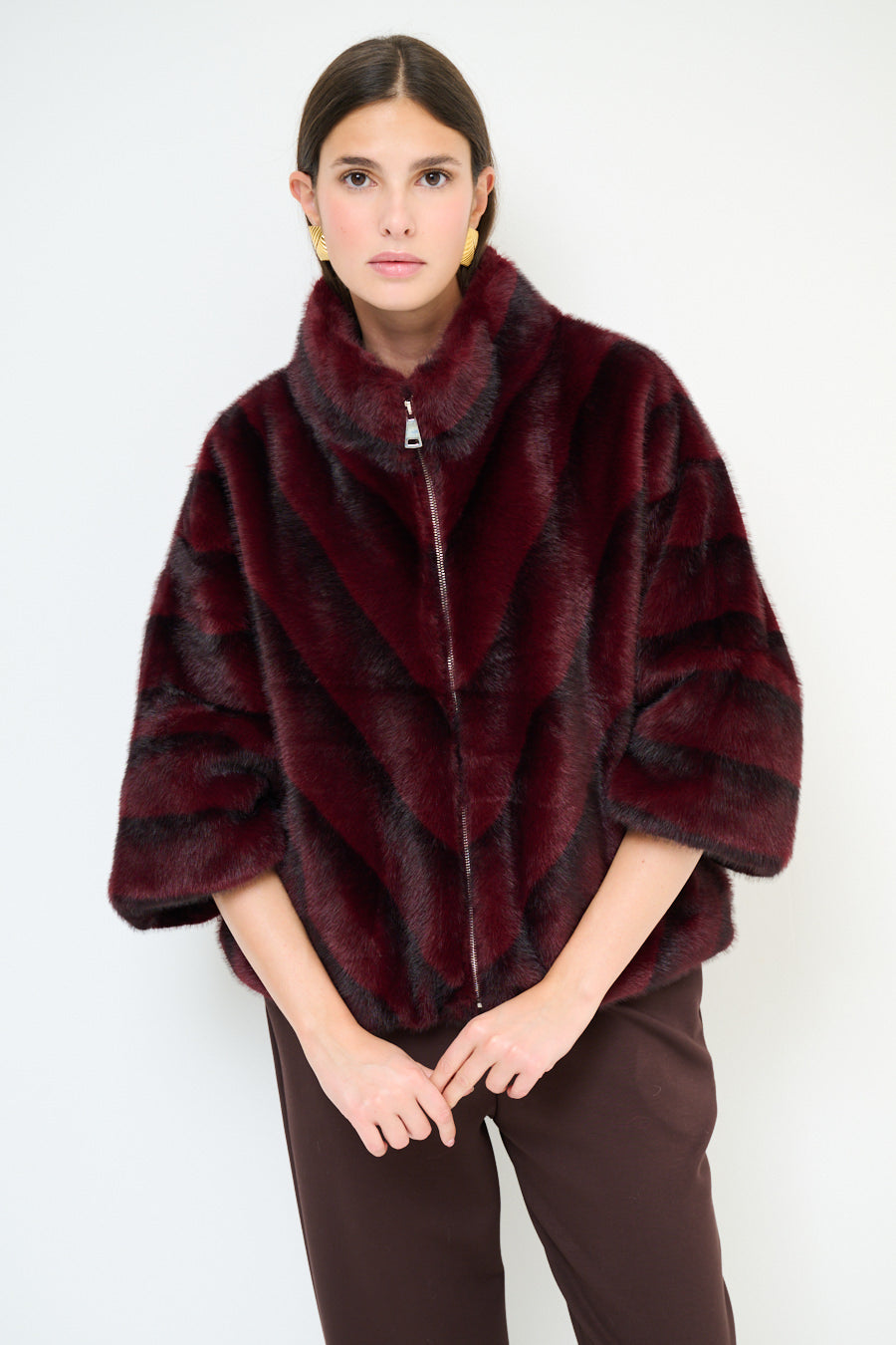 Полосатая укороченная куртка из искусственного меха с высоким воротником оптом