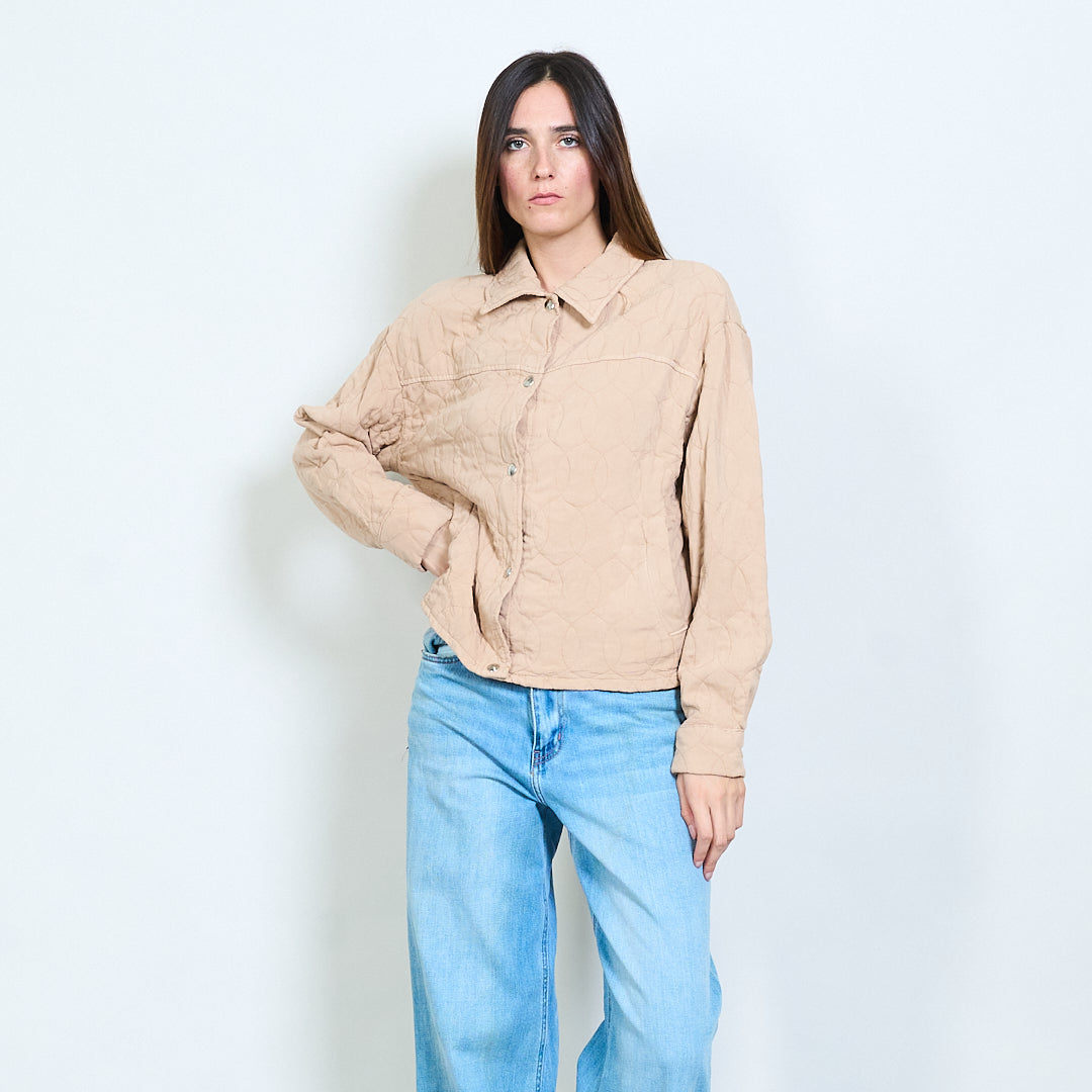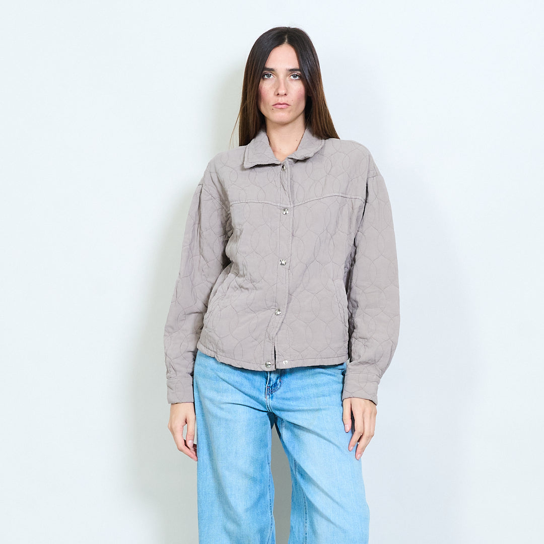 - Стеганый дизайн создает современный и текстурированный стиль верхней одежды