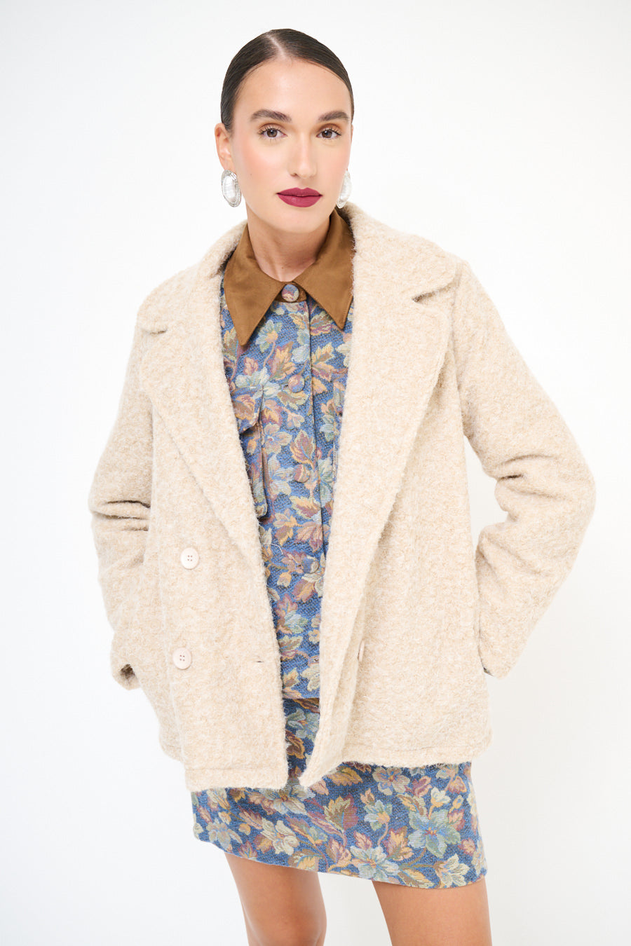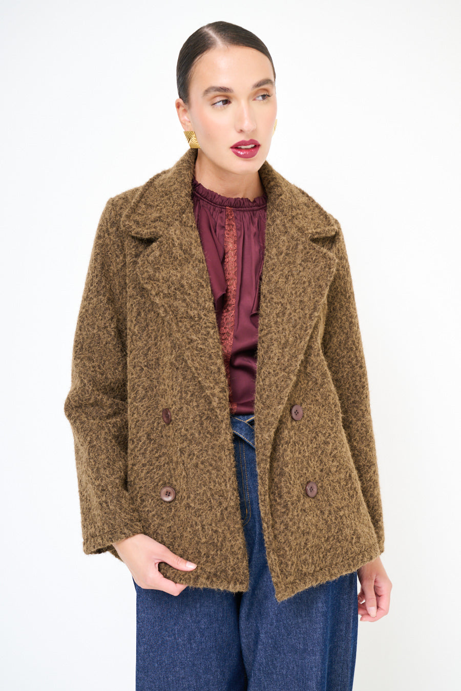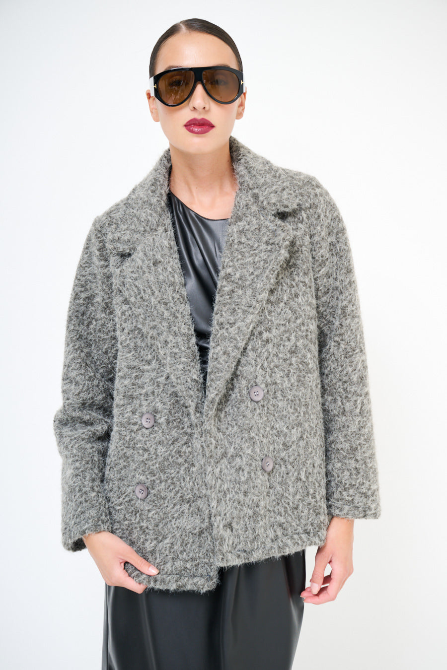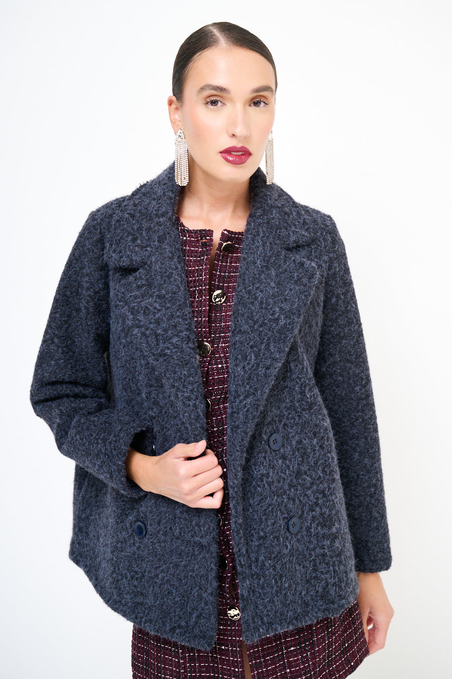 - Двойное замыкание с широким лацкатным воротником для классического прикосновения
