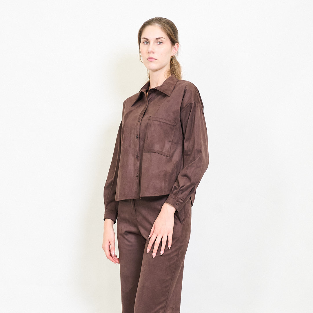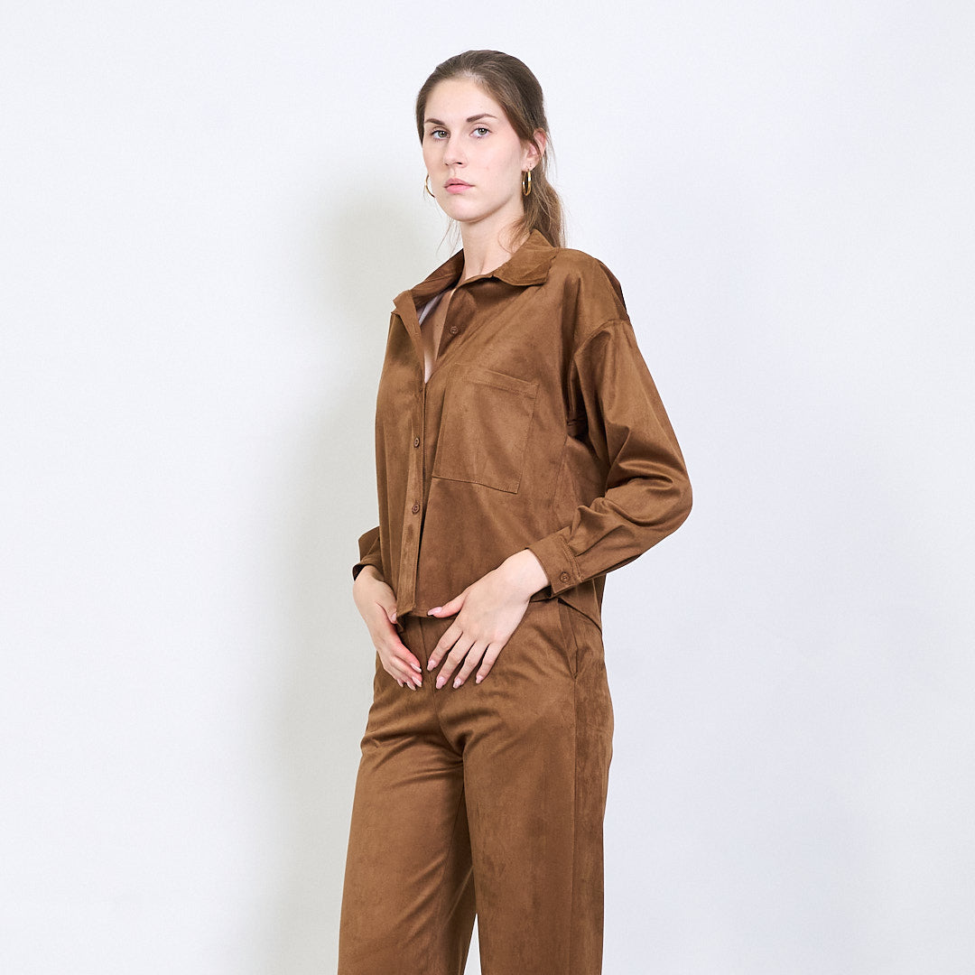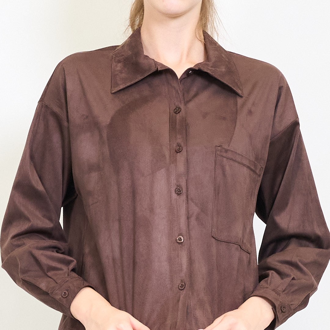 - Расслабленная рубашка, сделанная из мягкой фальшивой замши
