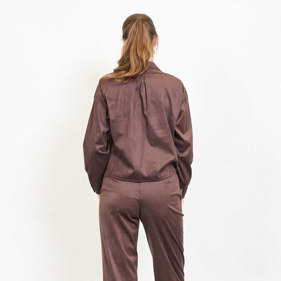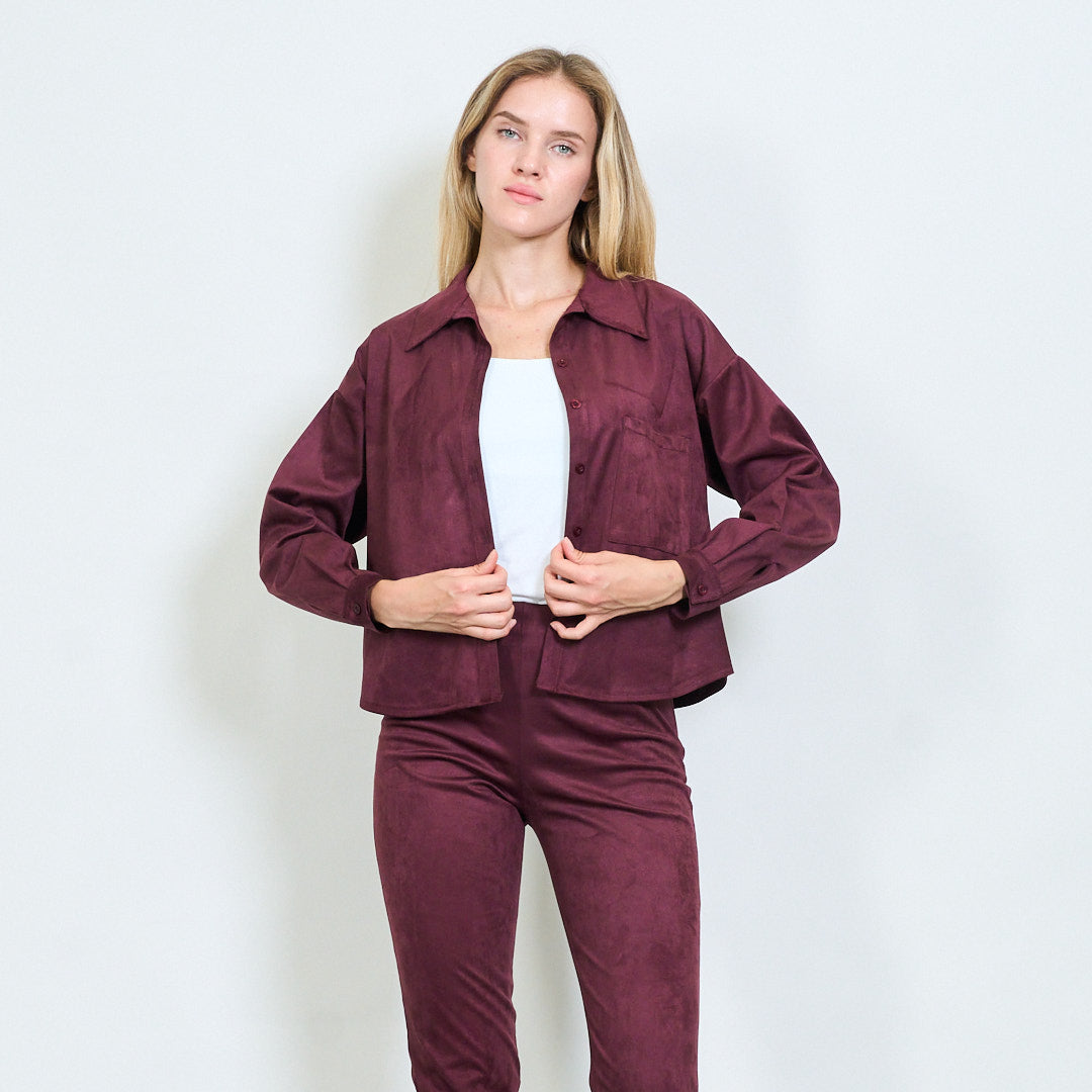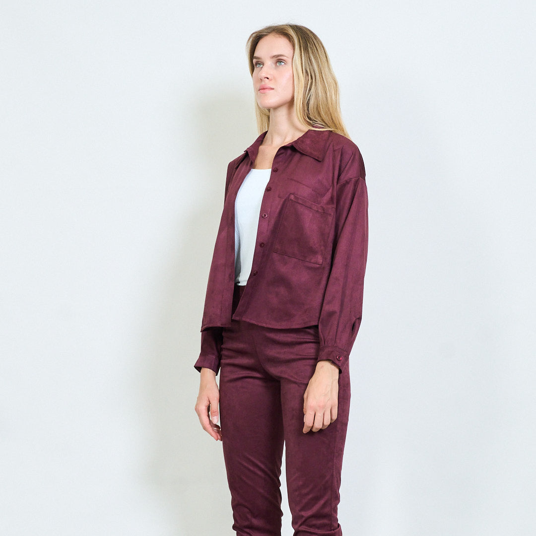 - Расслабленная рубашка, сделанная из мягкой фальшивой замши
