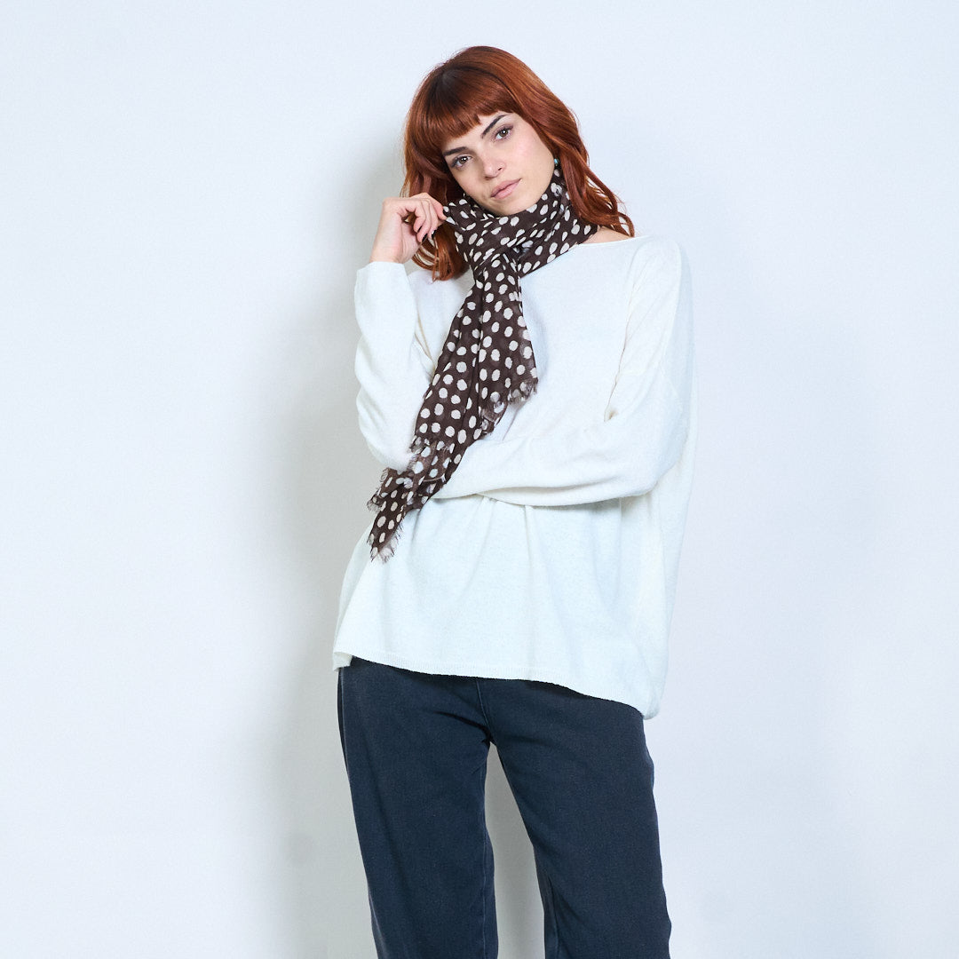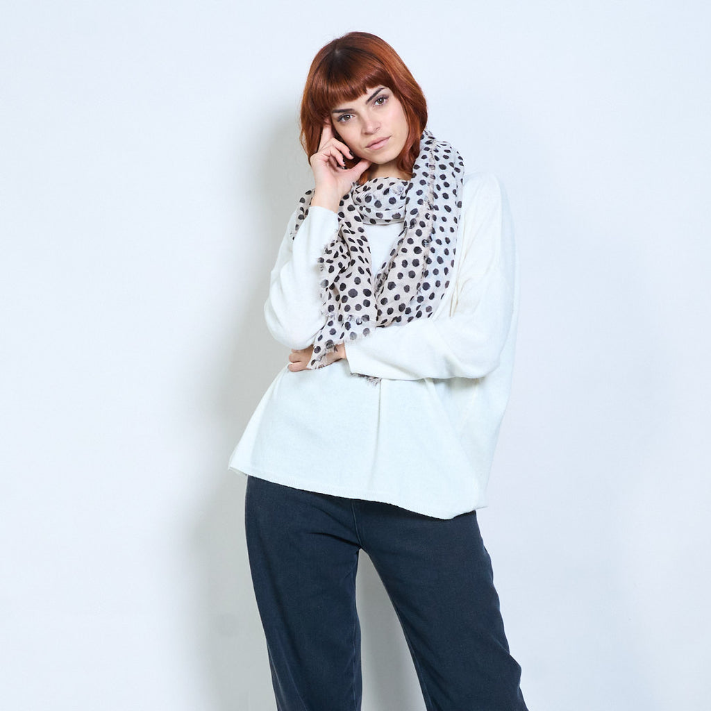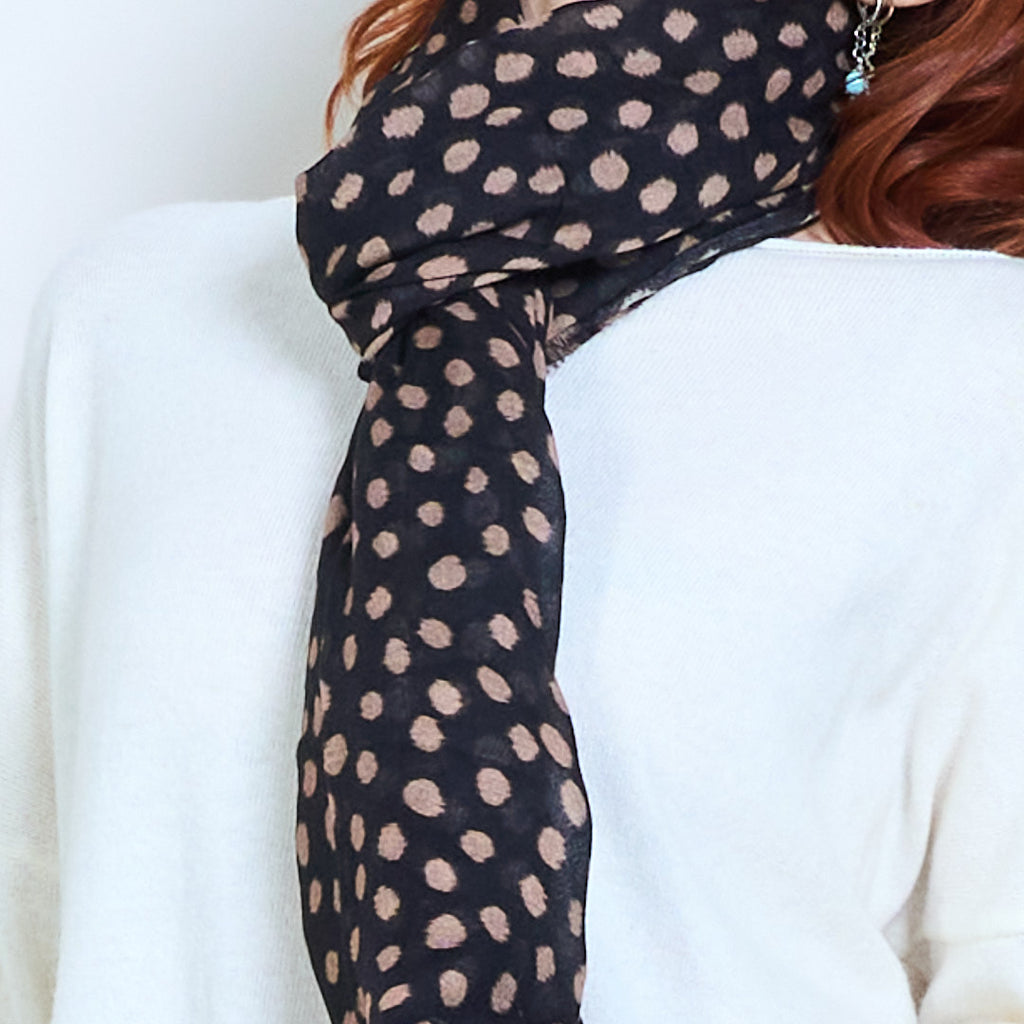 Легкий длинный шарф в винтажном стиле в горошек оптом
