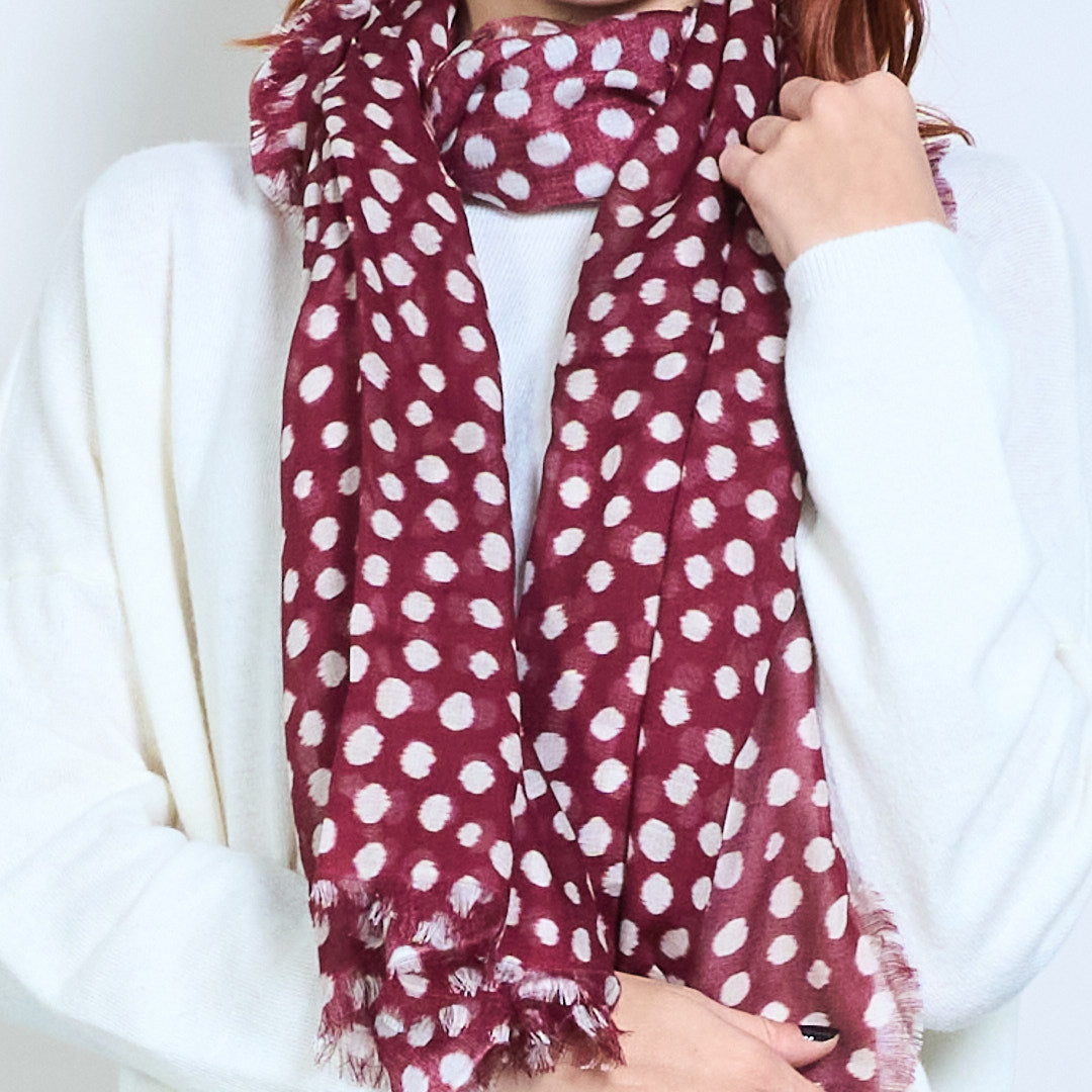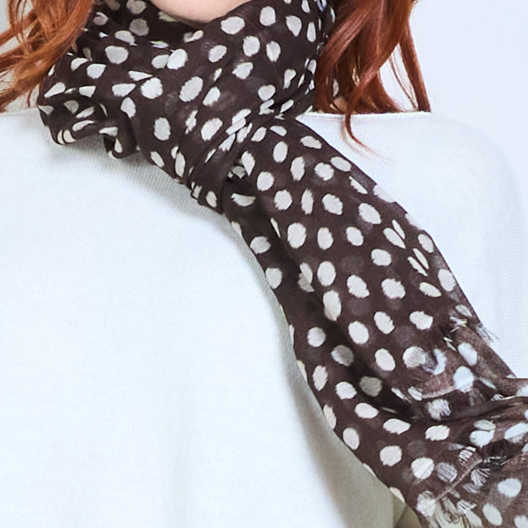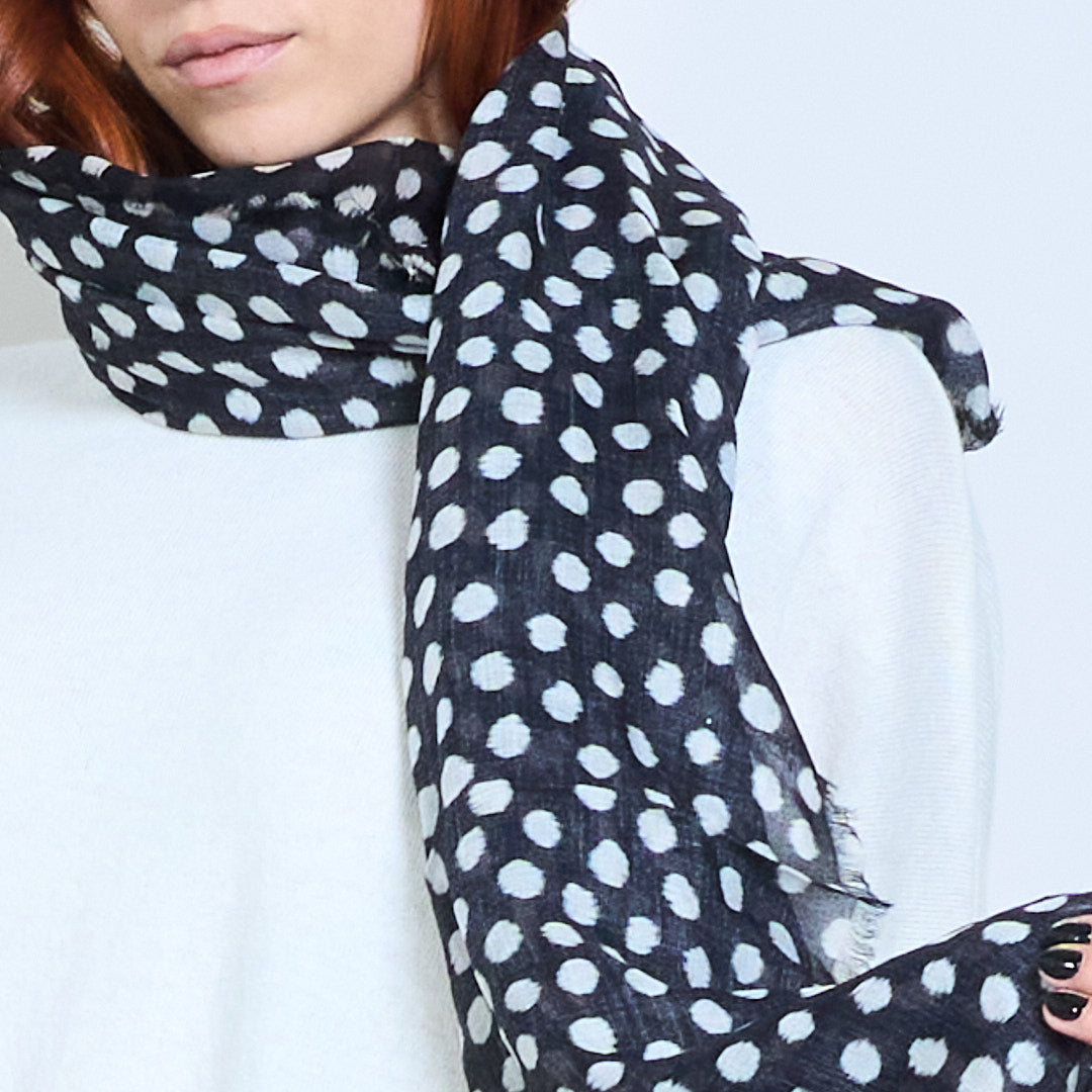 Легкий длинный шарф в винтажном стиле в горошек оптом