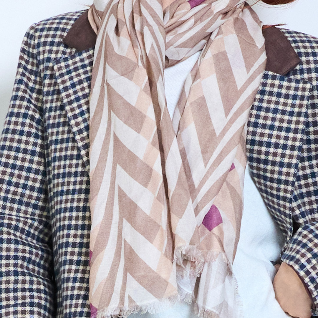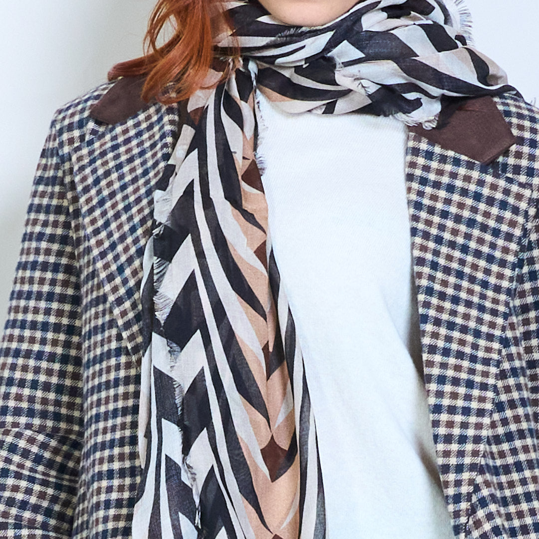 Легкий длинный шарф с геометрическим шевронным принтом оптом