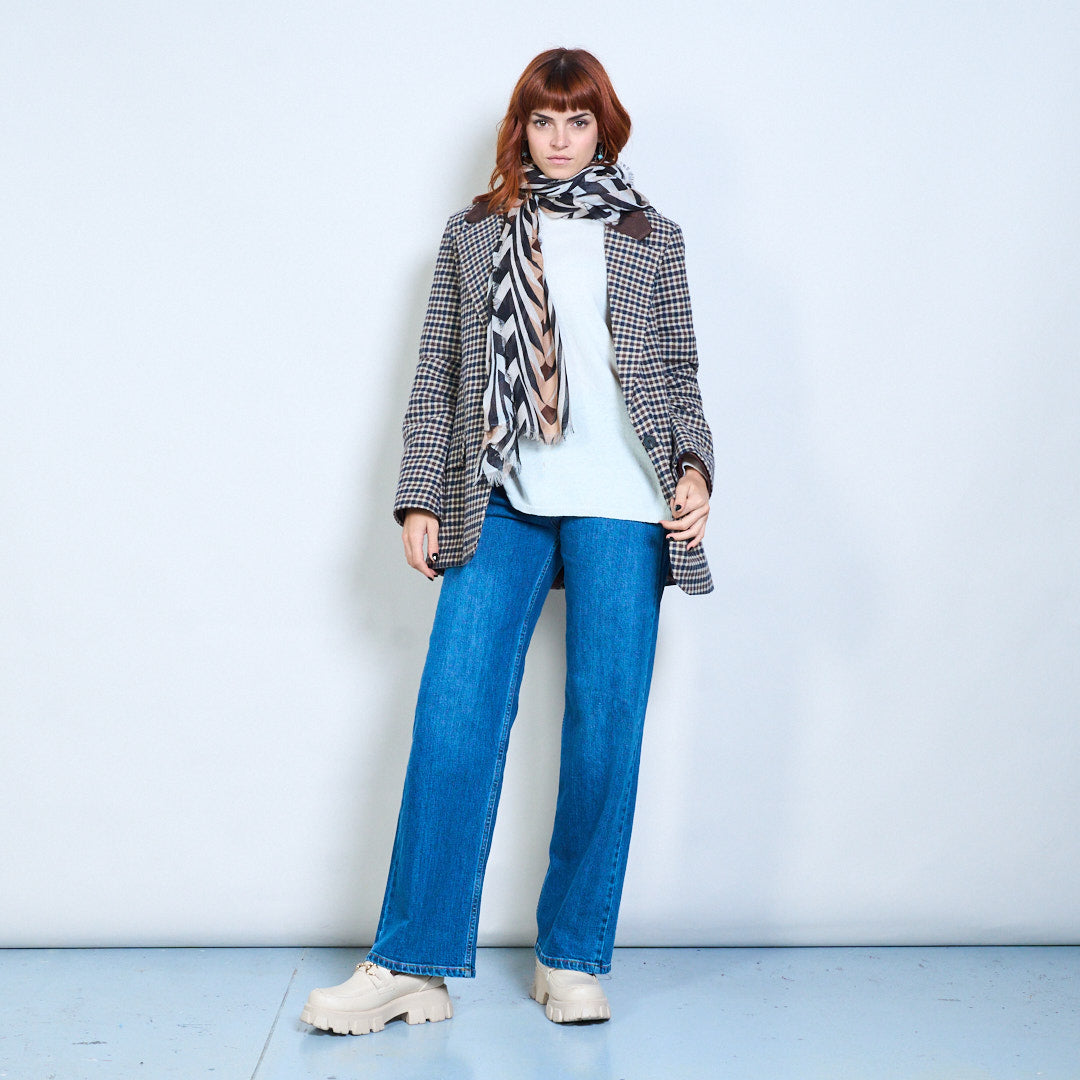 - Длинный прямоугольный силуэт позволяет легко наматывать и накладывать слои.