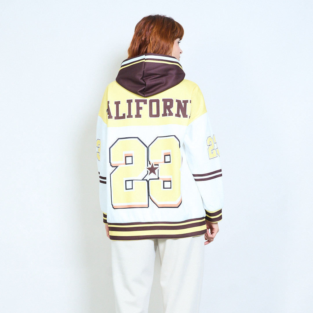 • Длинные рукава с графическими цифрами создают студенческий образ.