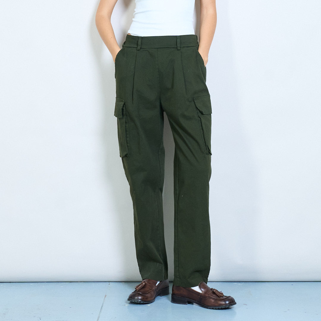Брюки карго прямого кроя с отделкой карманами оптом.