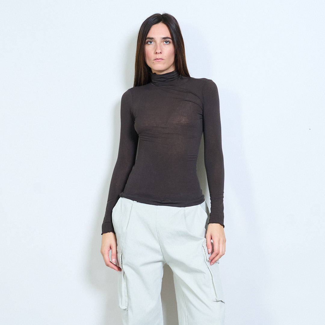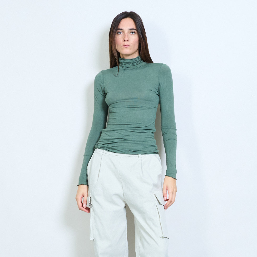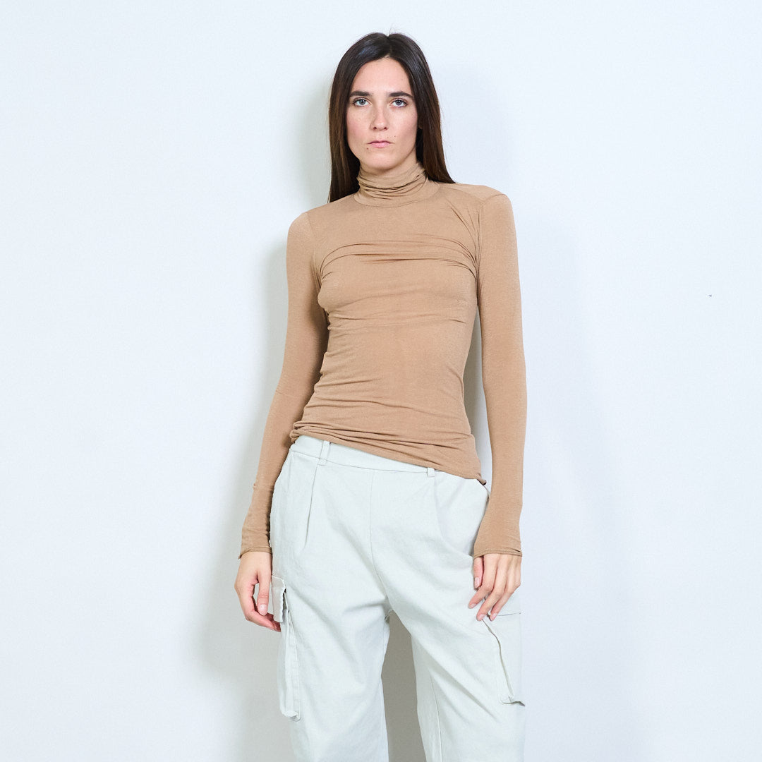 Приталенный топ с высоким воротником и длинными рукавами оптом