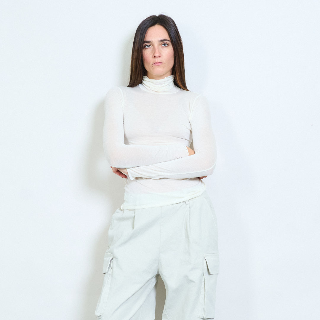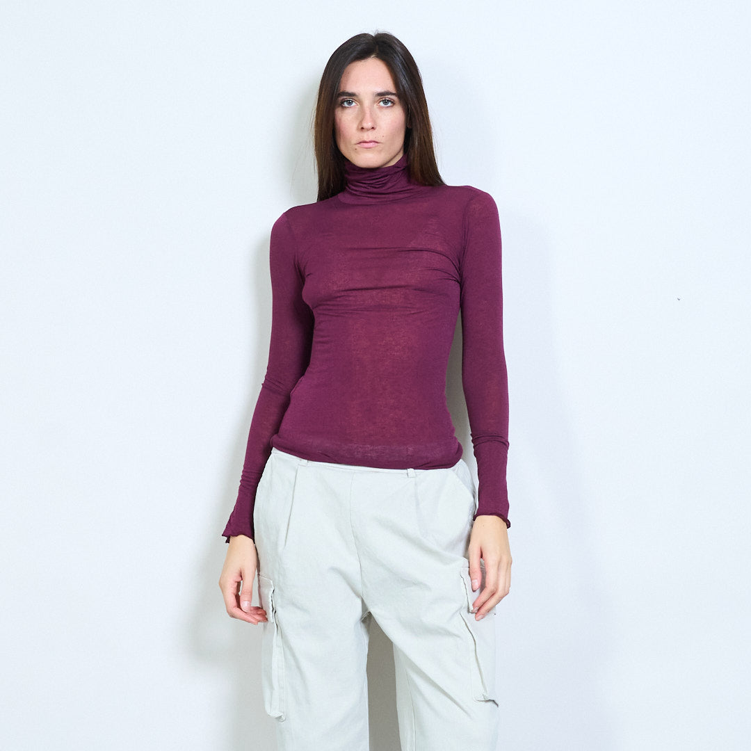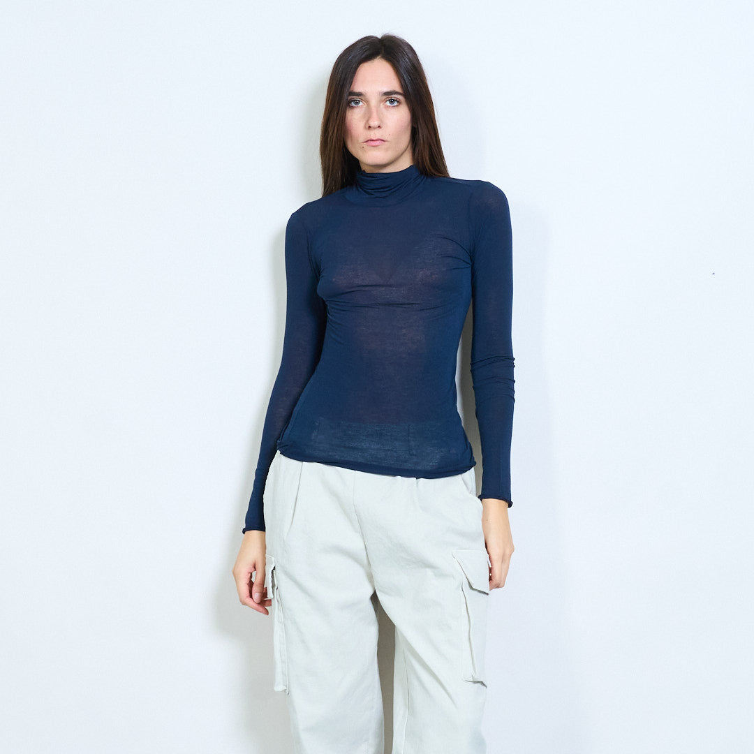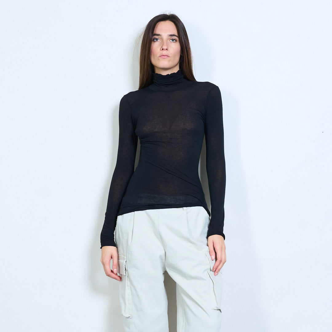 Приталенный топ с высоким воротником и длинными рукавами оптом