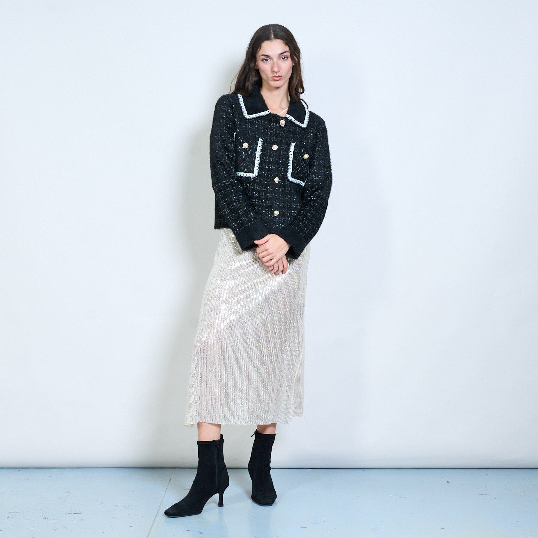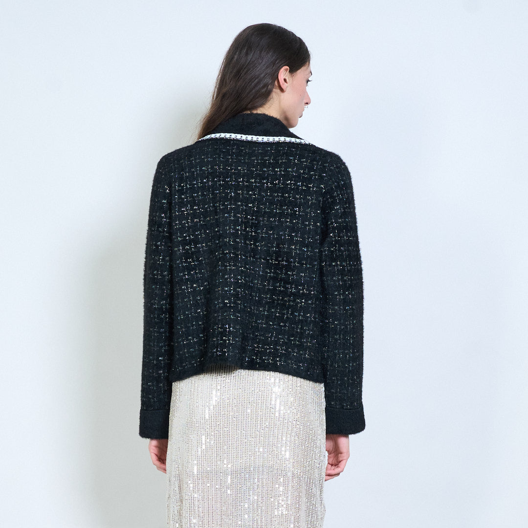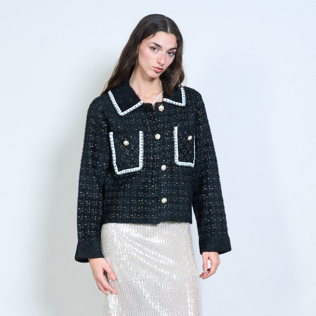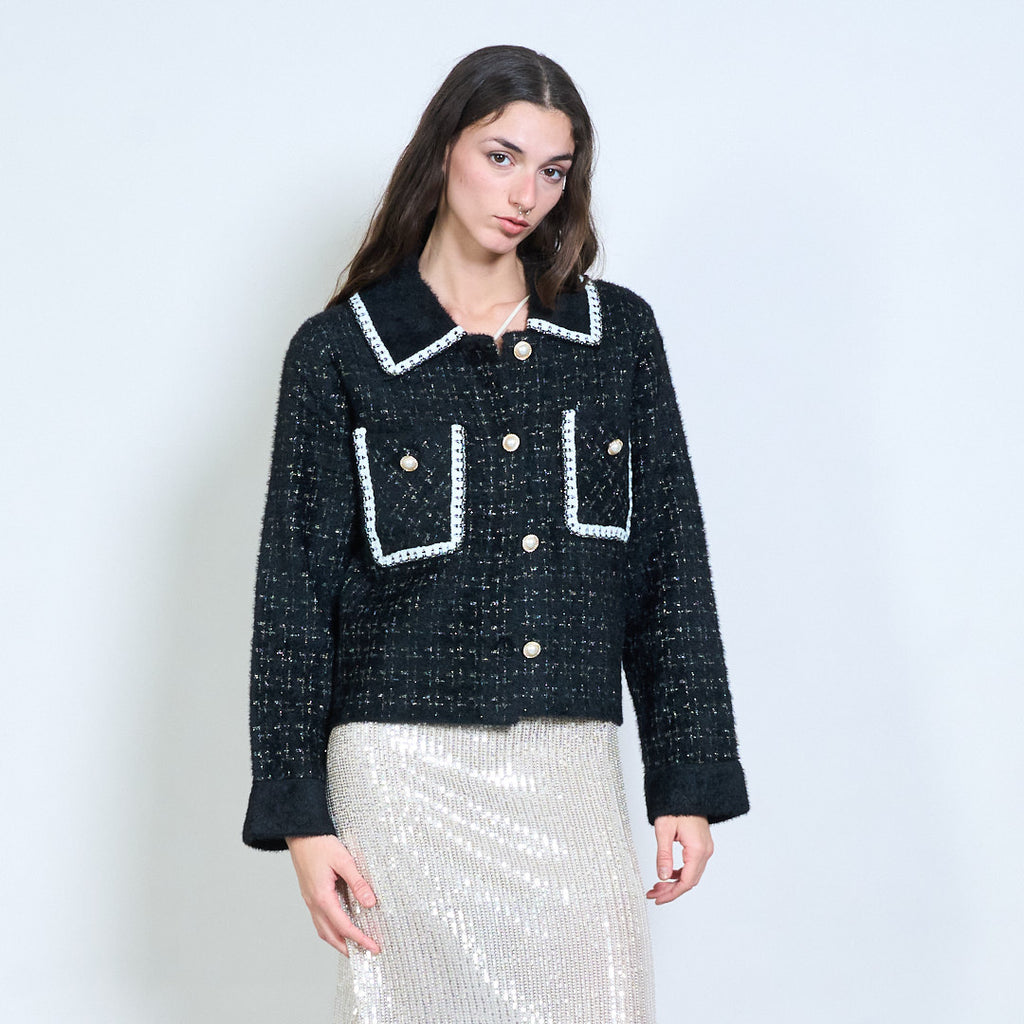 - Декоративная плетеная отделка вдоль воротника, карманов и планки придает роскошный вид.