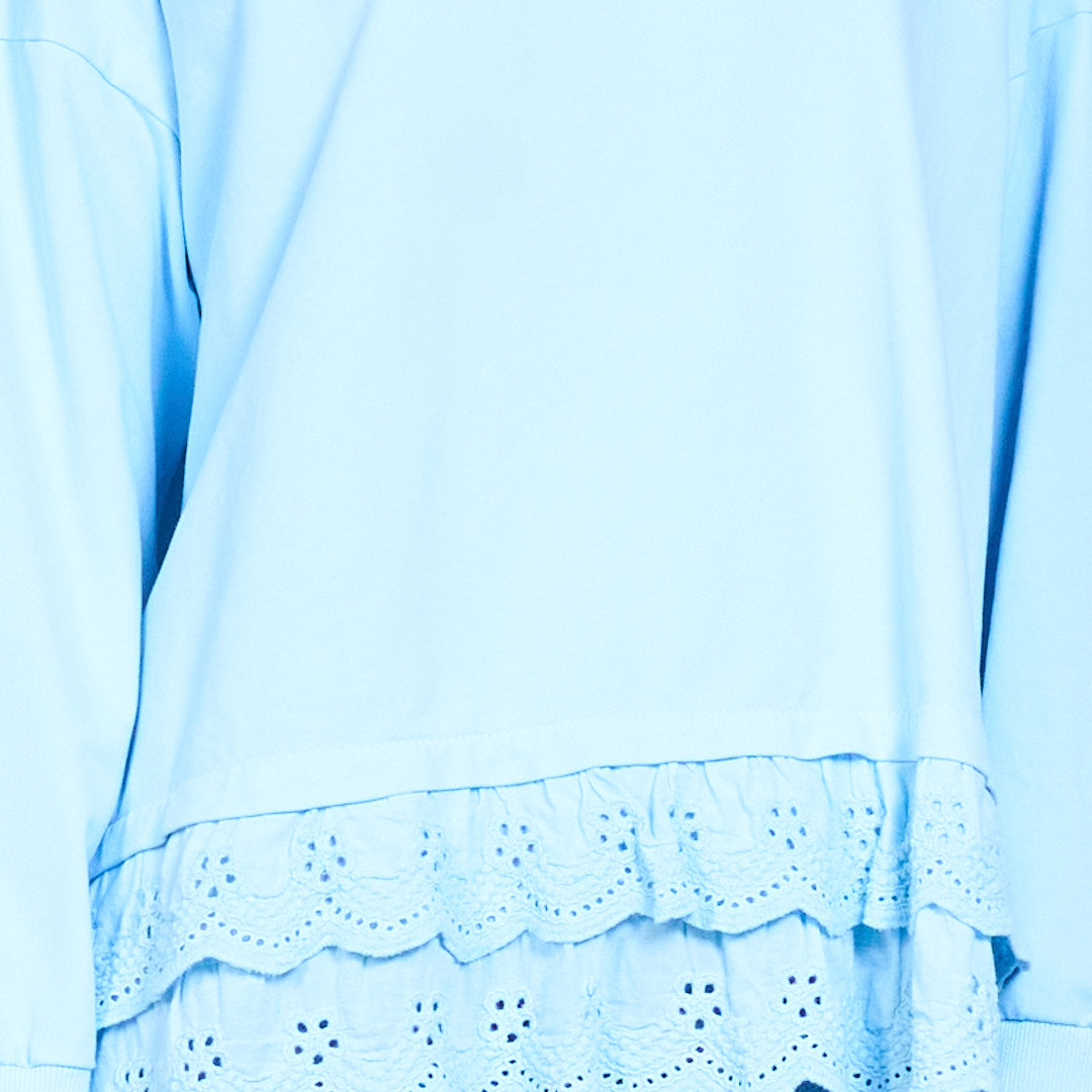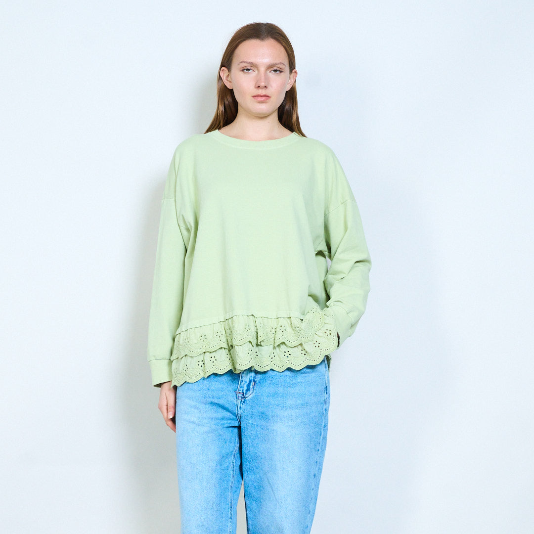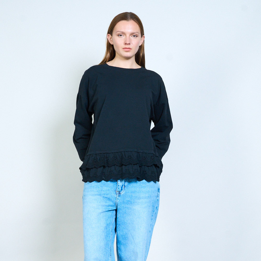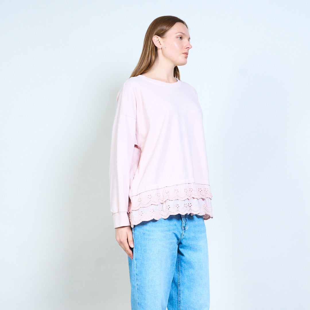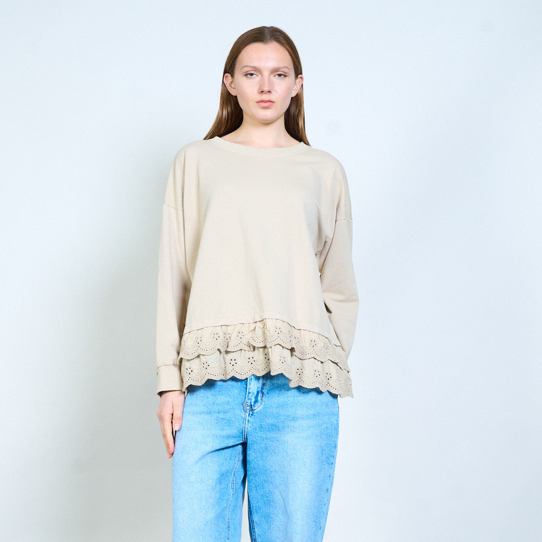 Свободный топ с длинными рукавами и кружевным подолом оптом