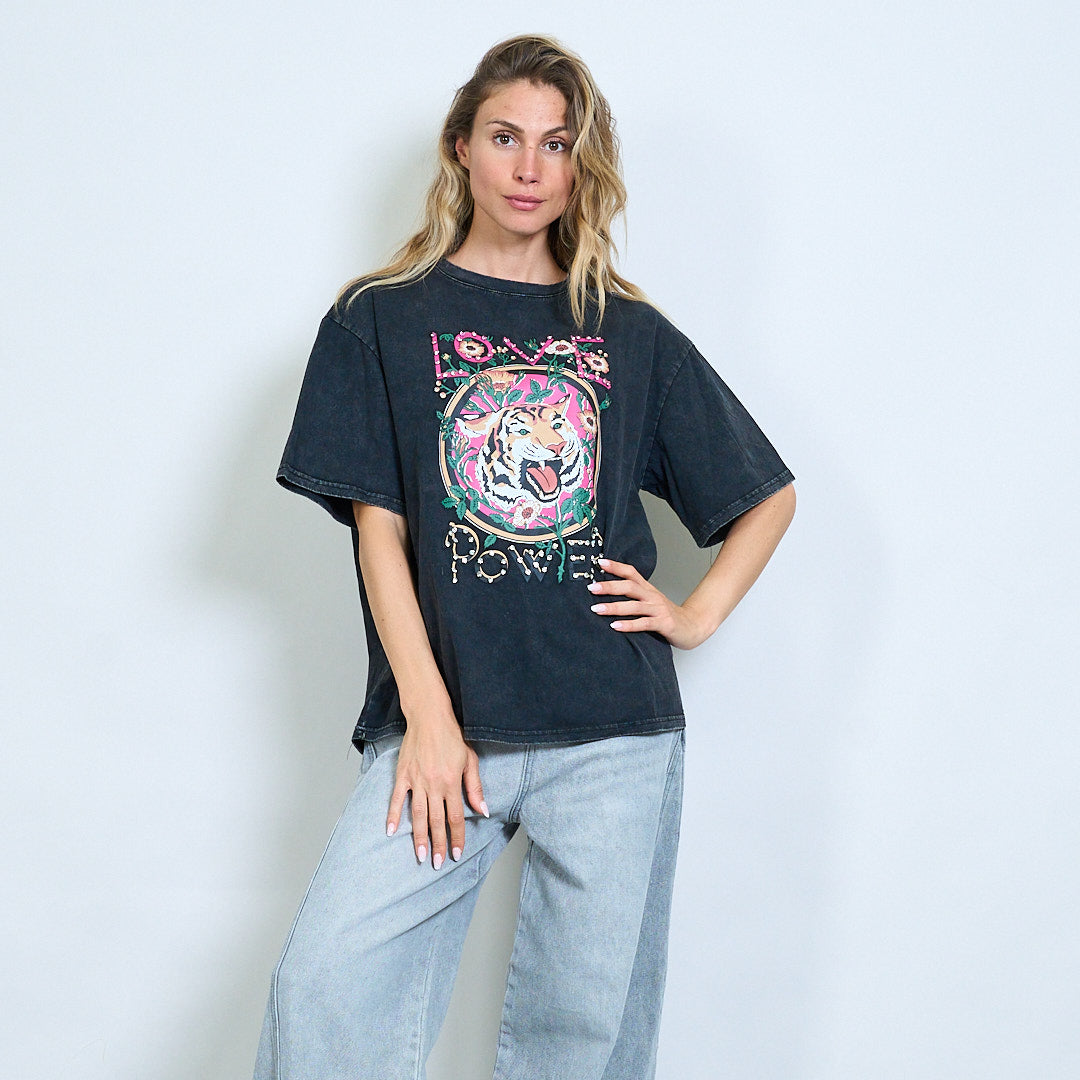 «Любовная сила» Tiger Floral Graphic Негабаритная футболка оптом