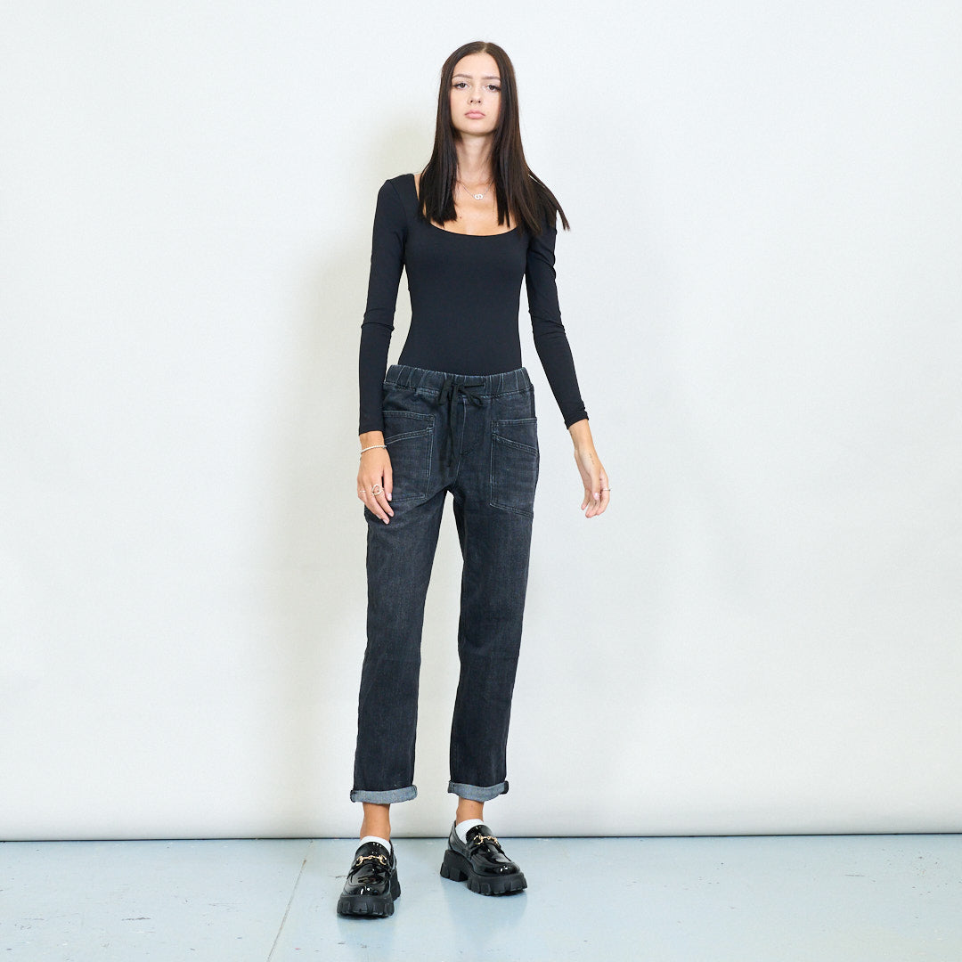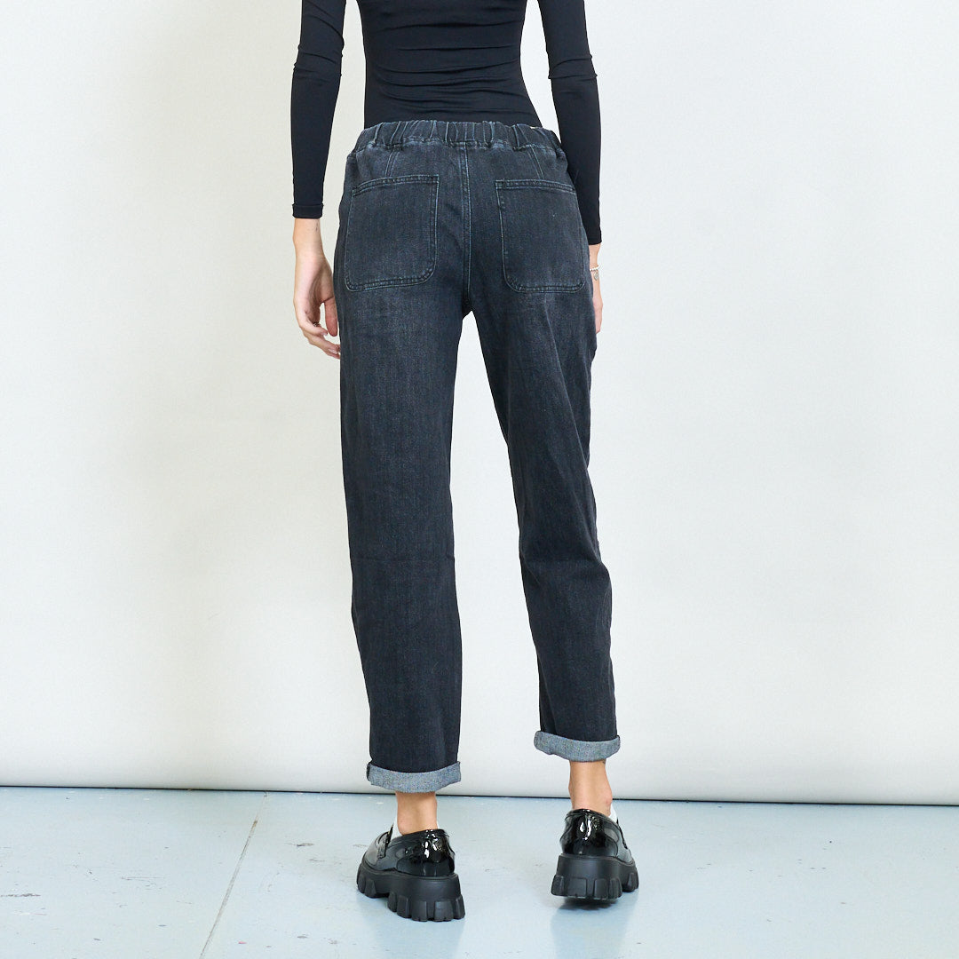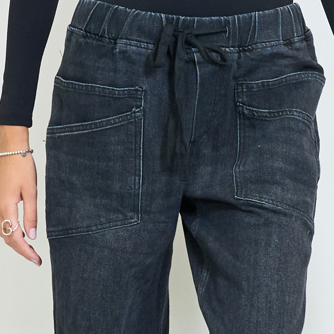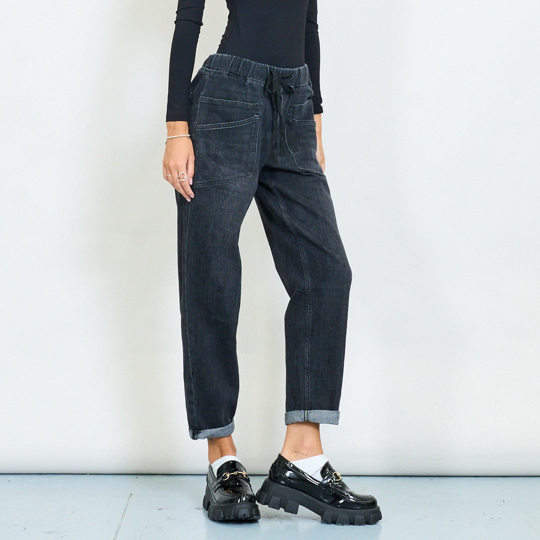 - Вымытая черная джинсовая отделка для модного городского стиля