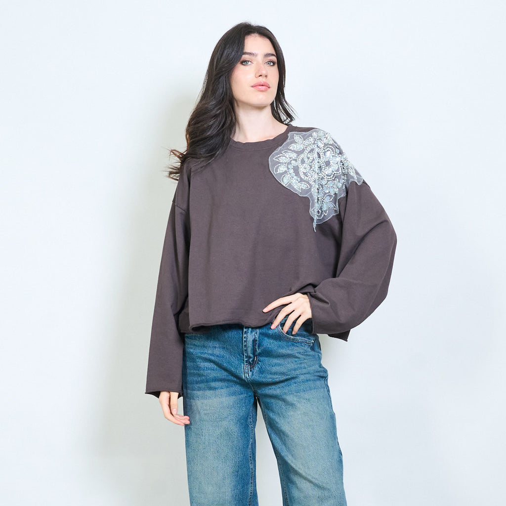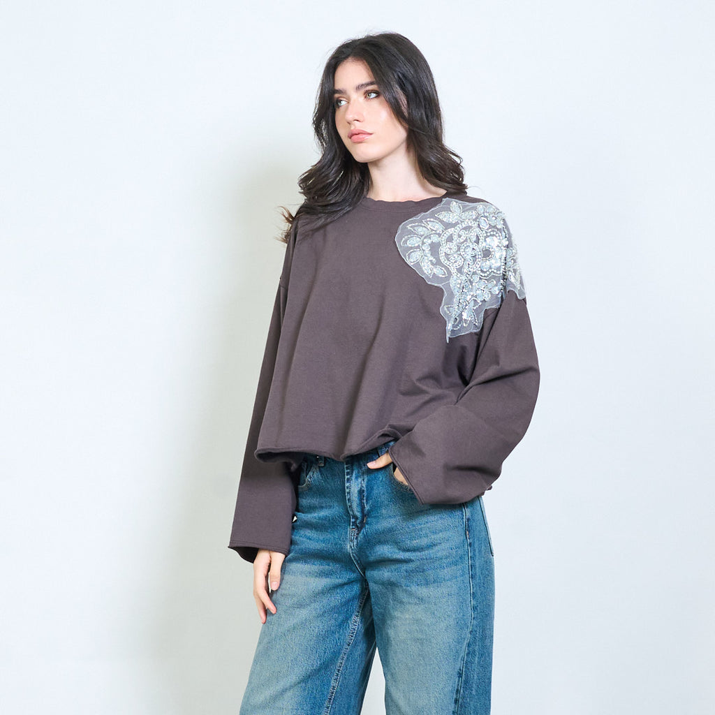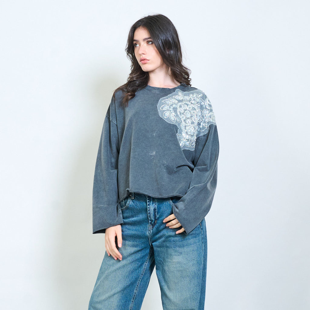 Цветочная блестка украшенная толстовка Оптовая торговля оптом