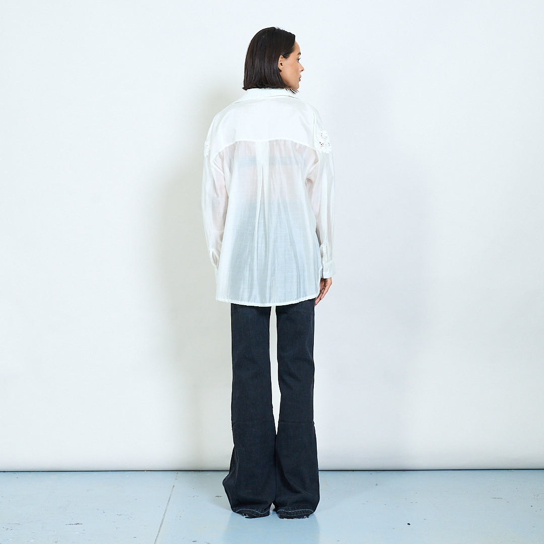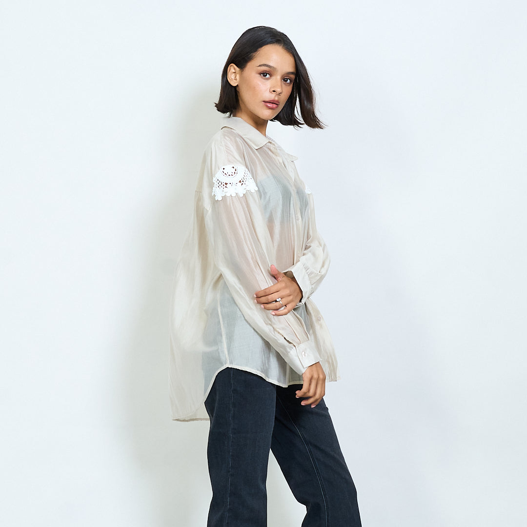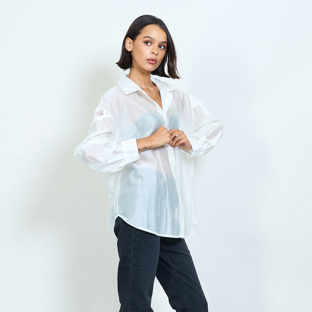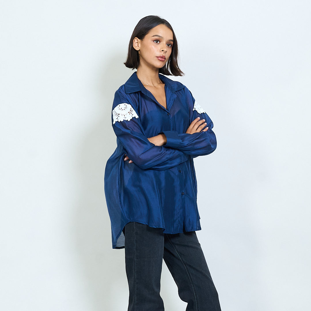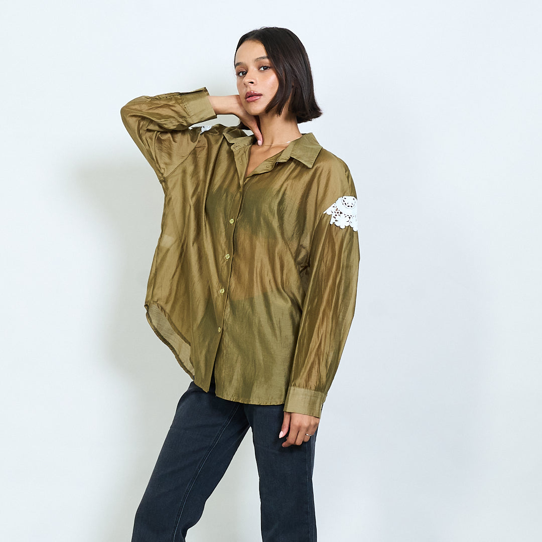 Блузка из негабаритного длинного рукава с классическим воротником оптом