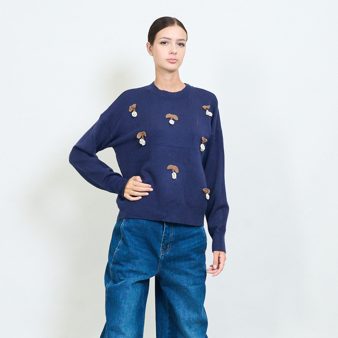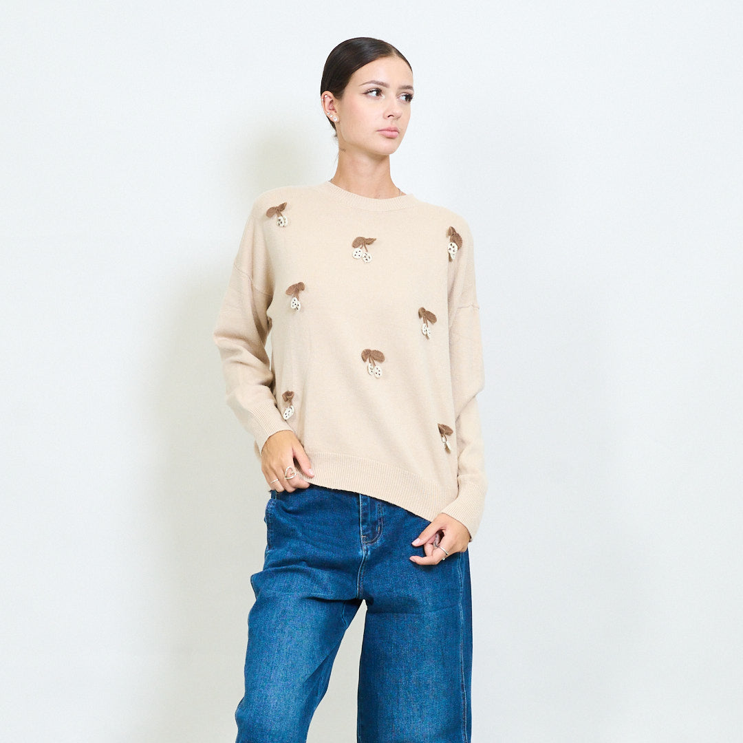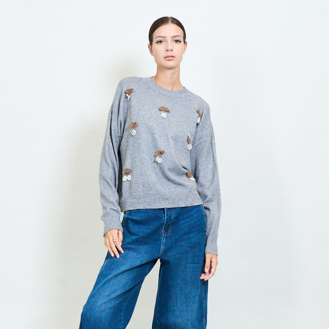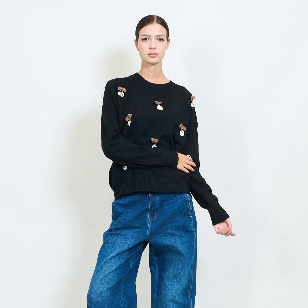Вишнево -аппликация игривого вязаного свитера оптом