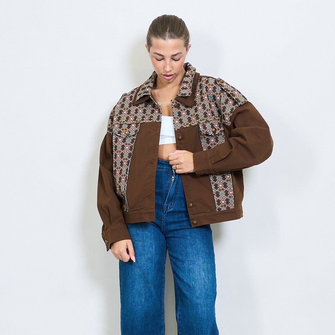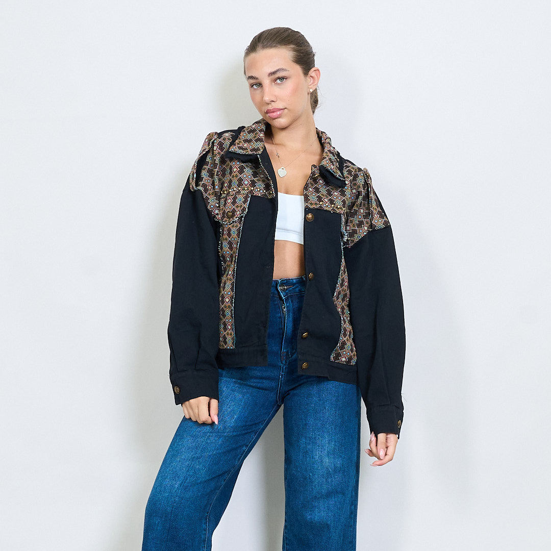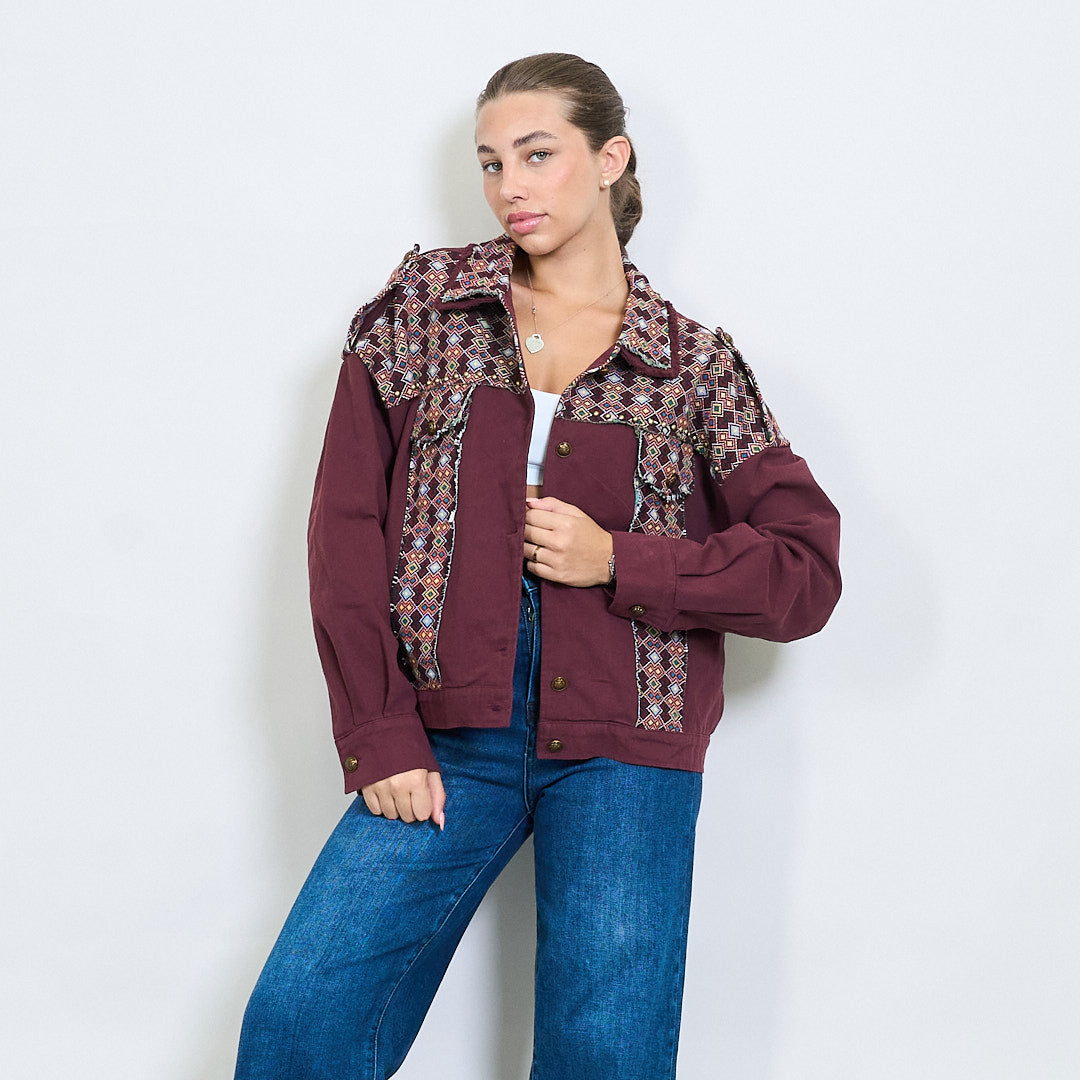 - Заявление геометрическая вышивка на спереди, сзади и воротнике