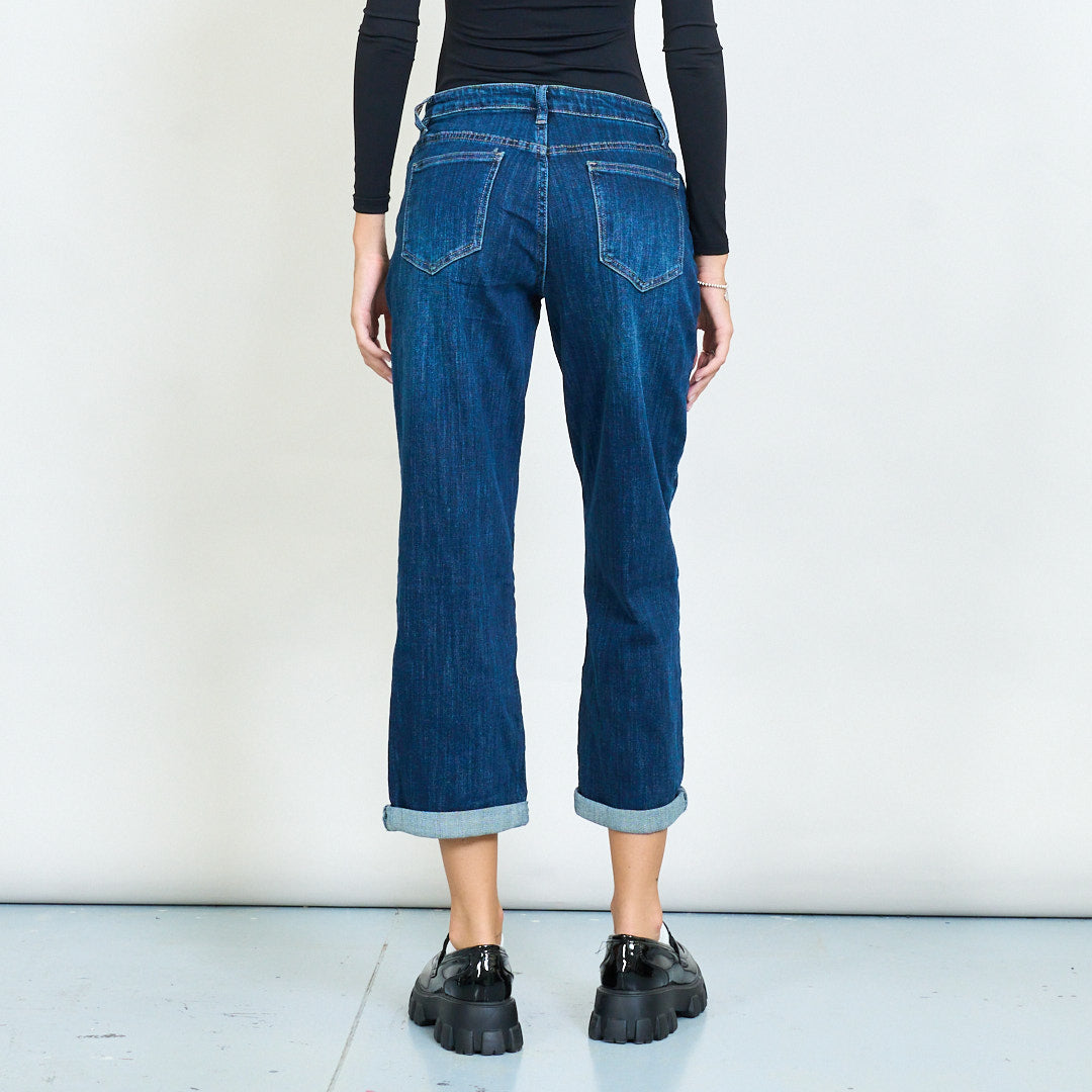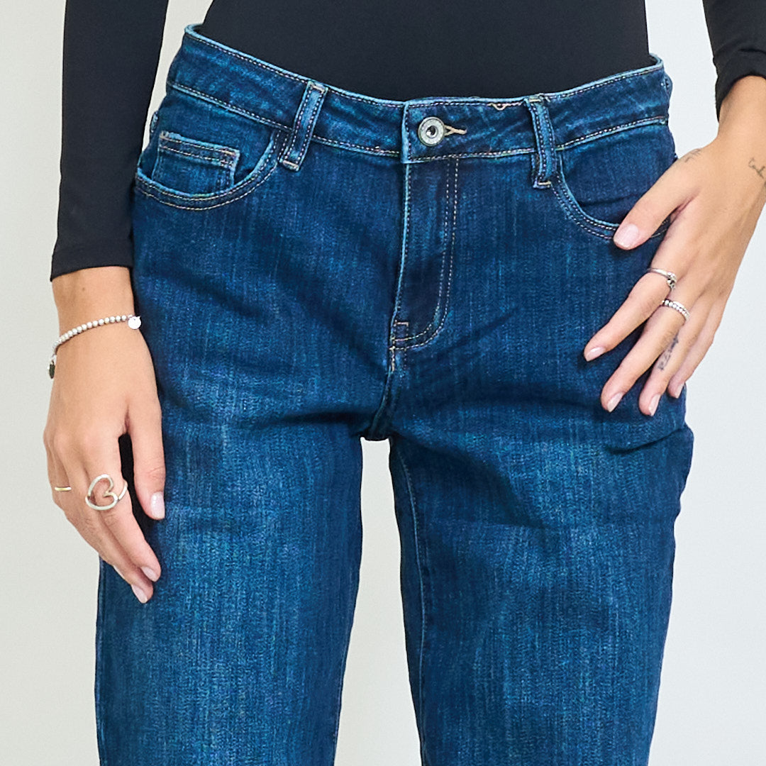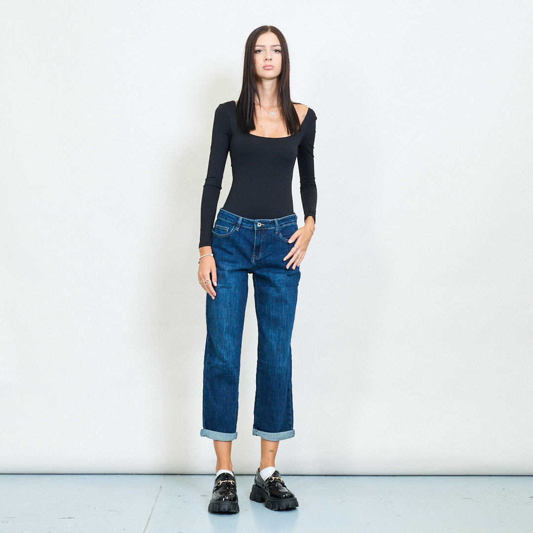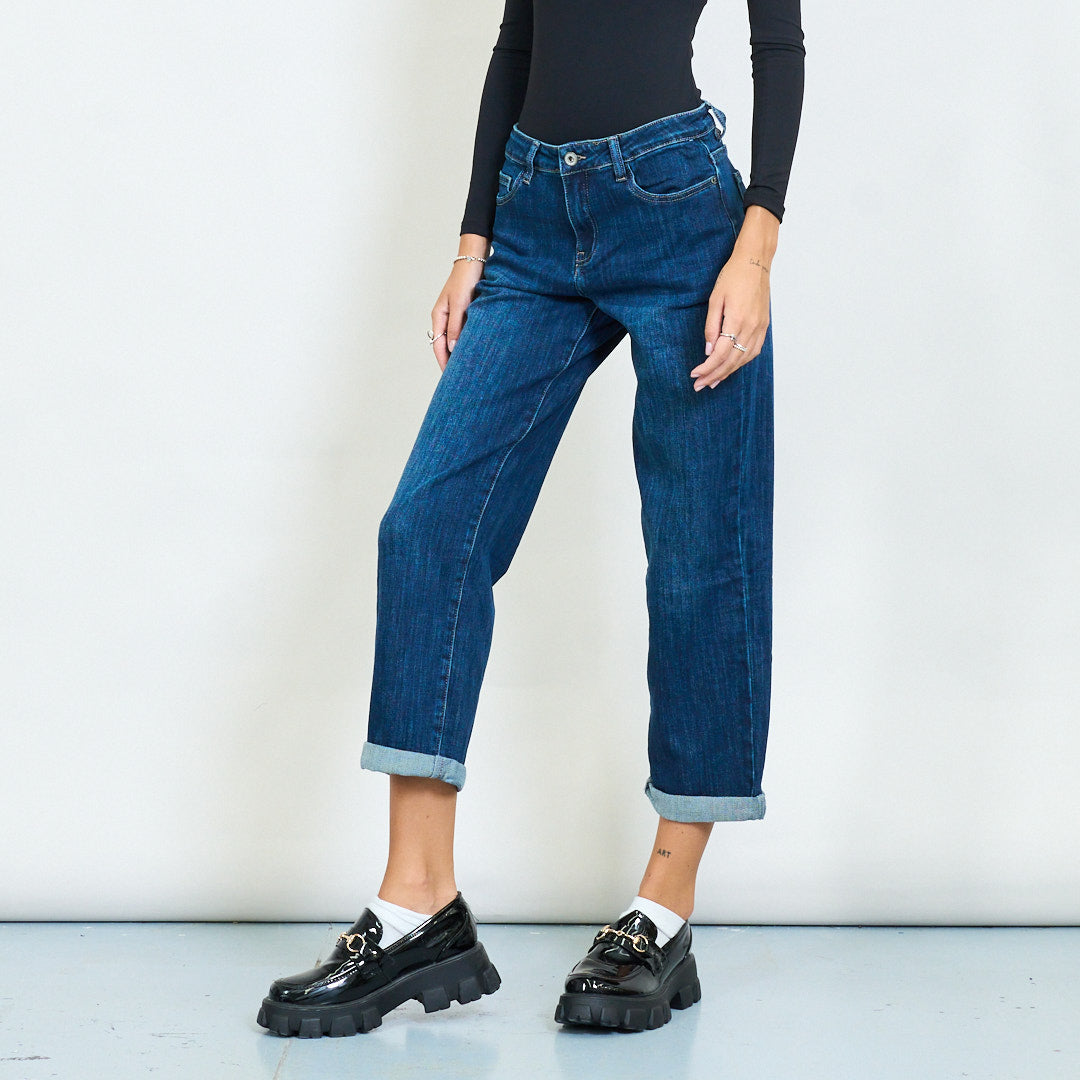 - Обрезанная длина со сложенными манжетами для повседневного стиля