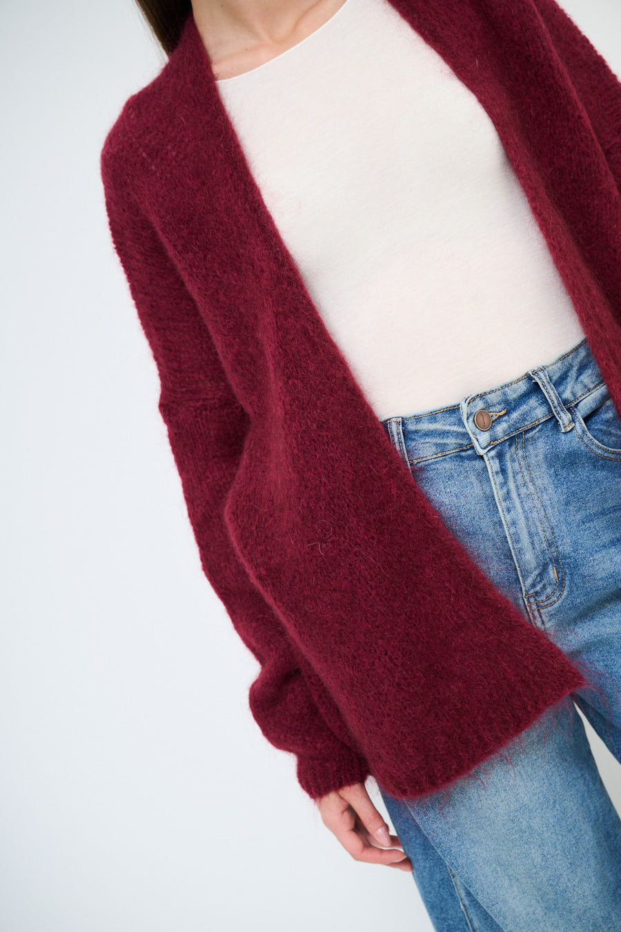 Пышный вязаный повседневный кардиган с открытым передом оптом