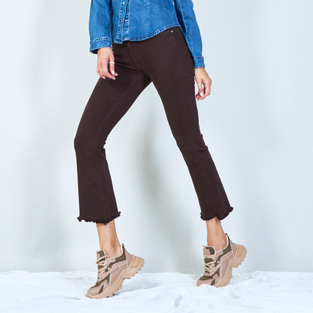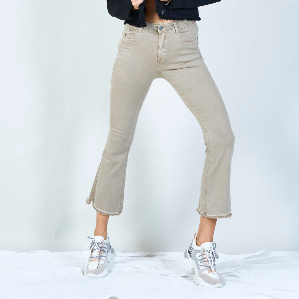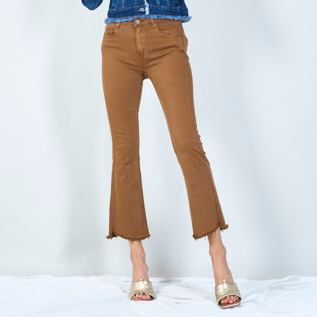 Snygga byxor med hög midja med råa hem grossist