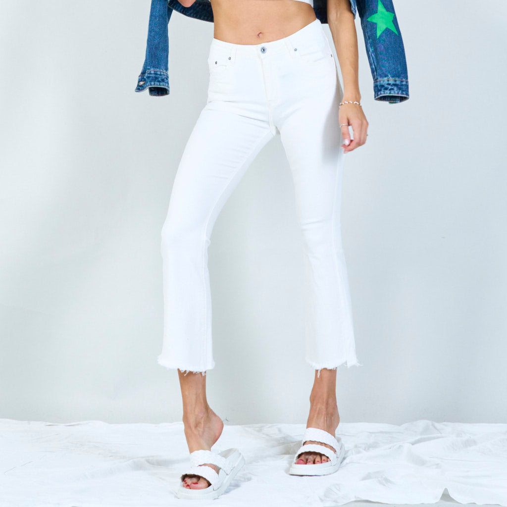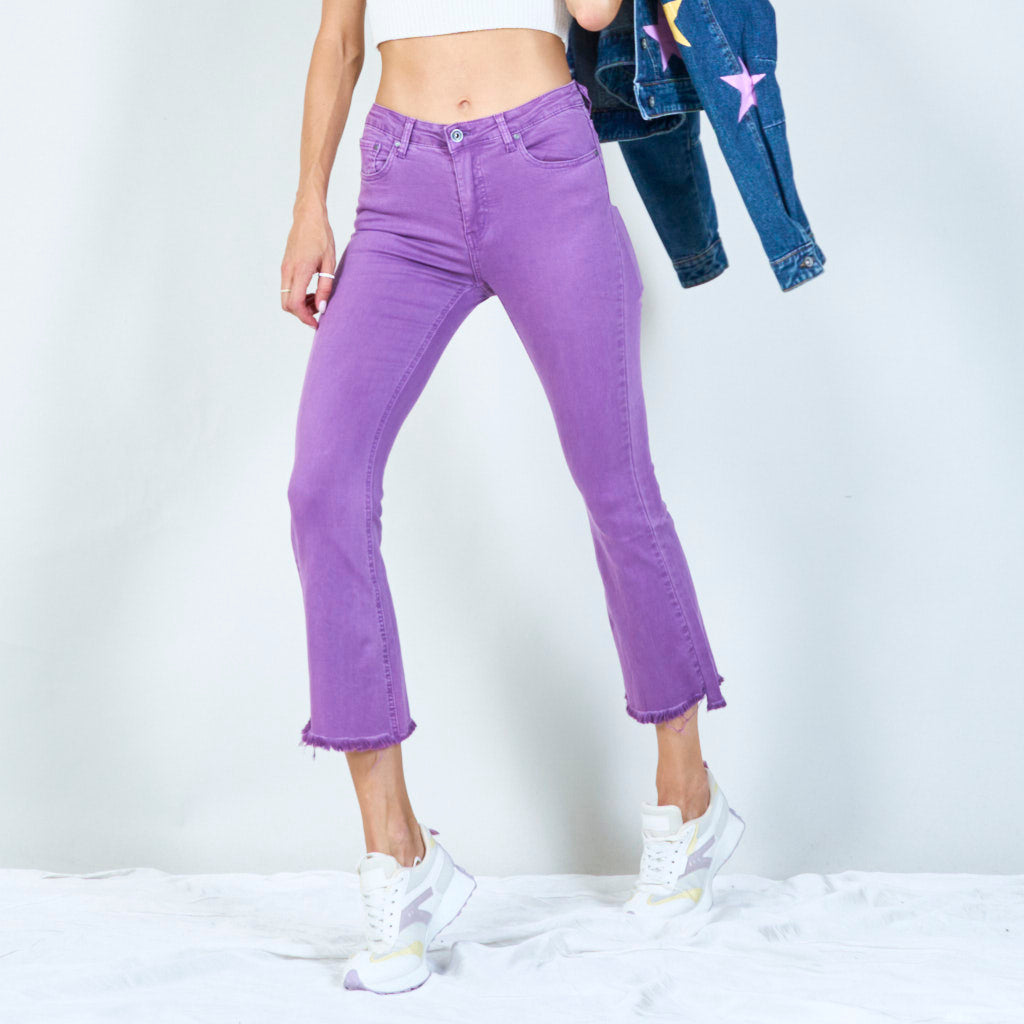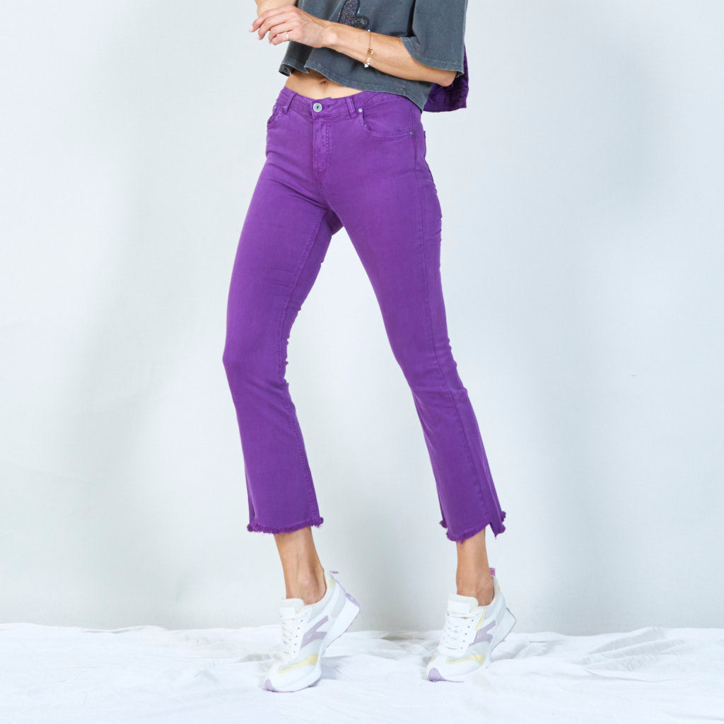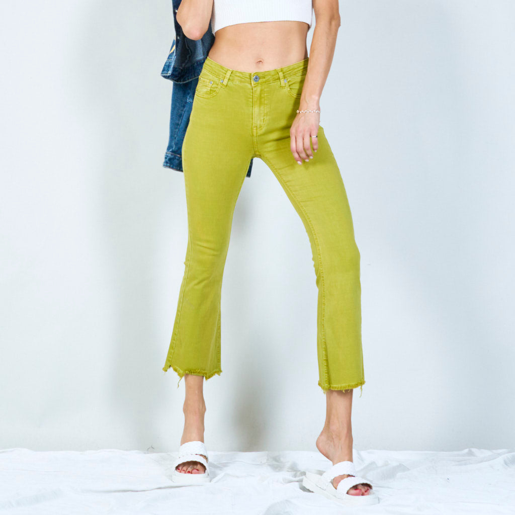 Snygga byxor med hög midja med råa hem grossist