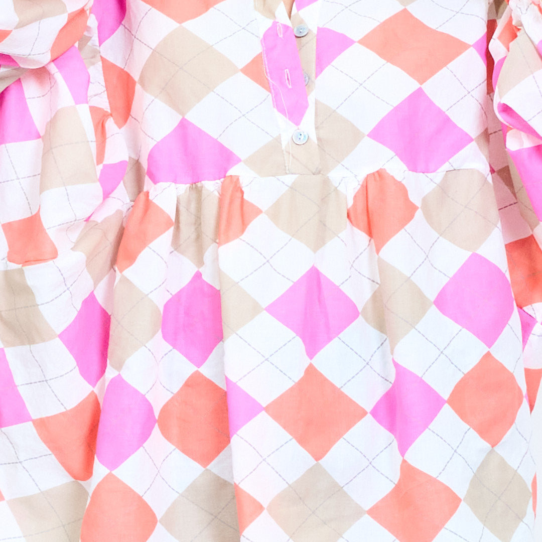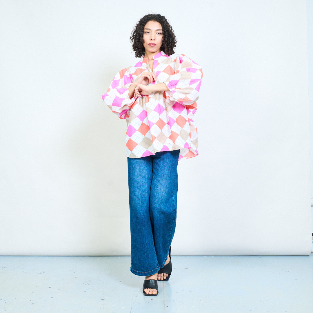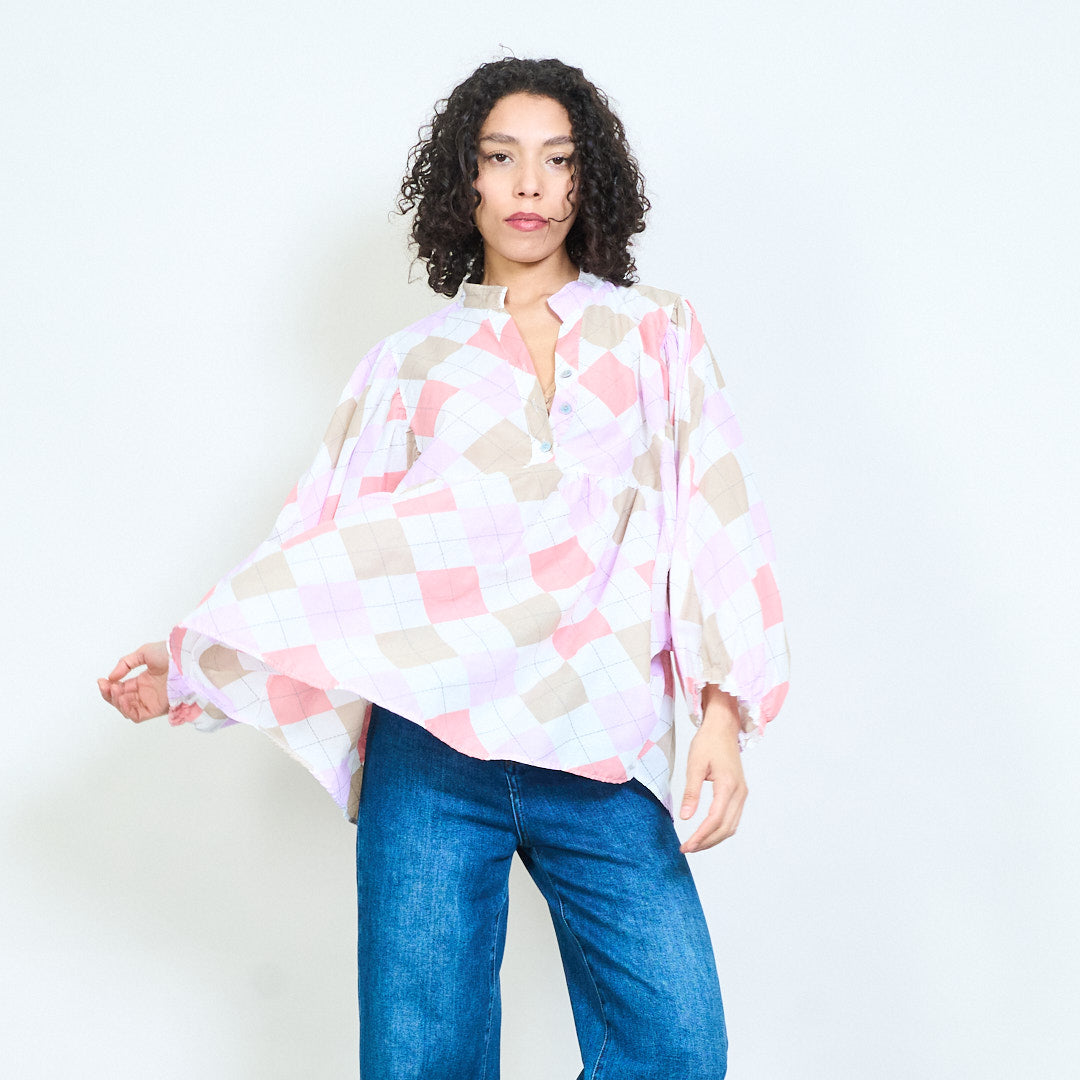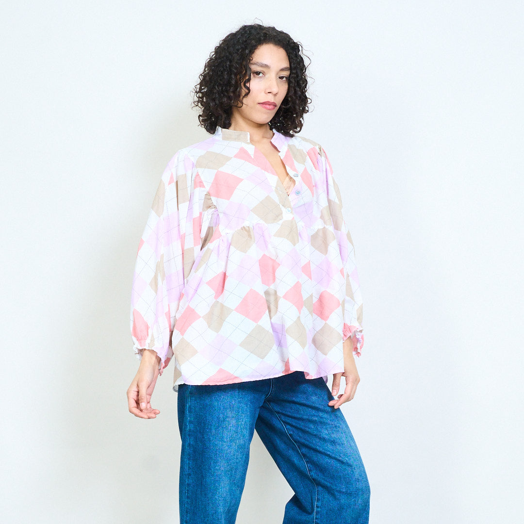Argyle rutig knapp framtill långärmad blus i grossistledet