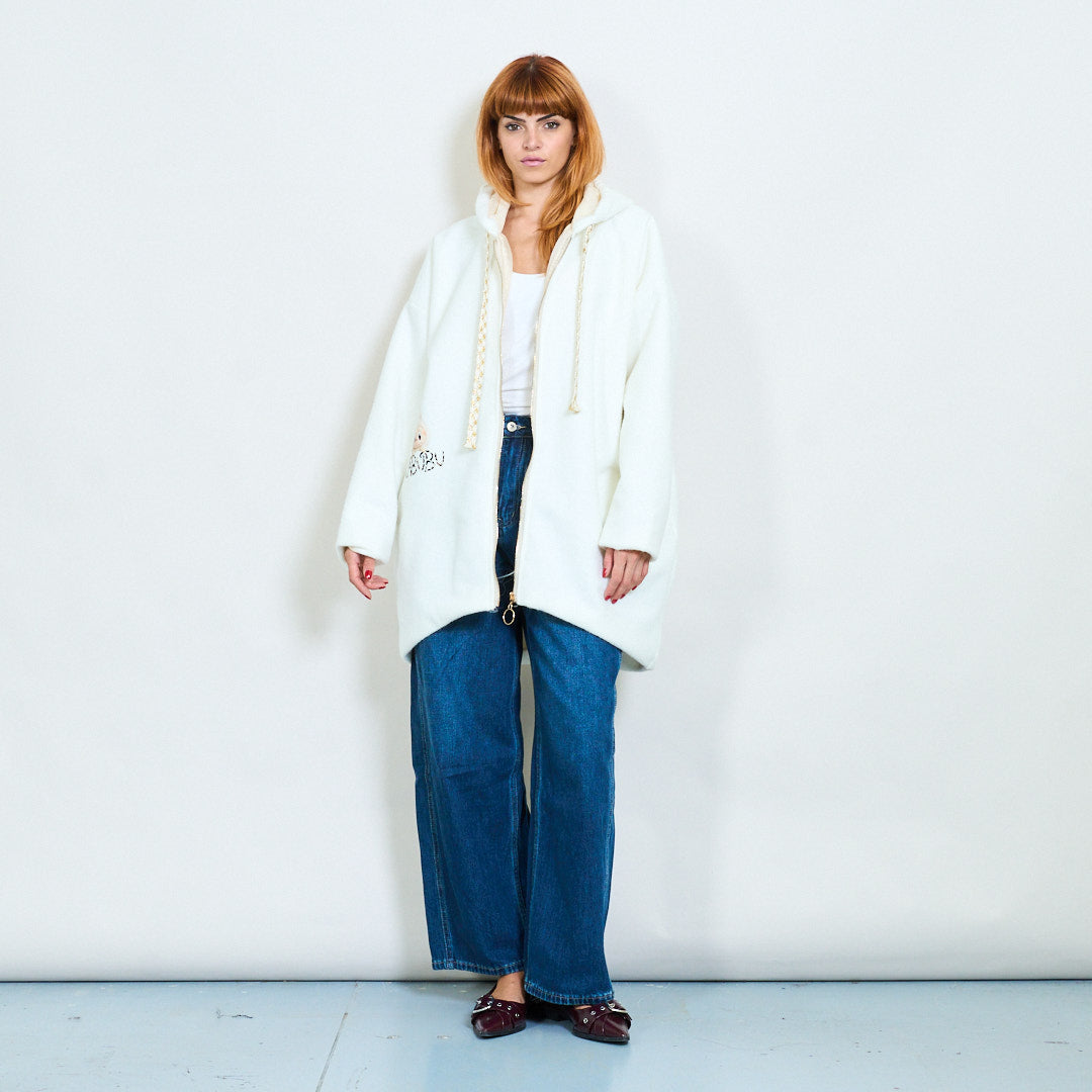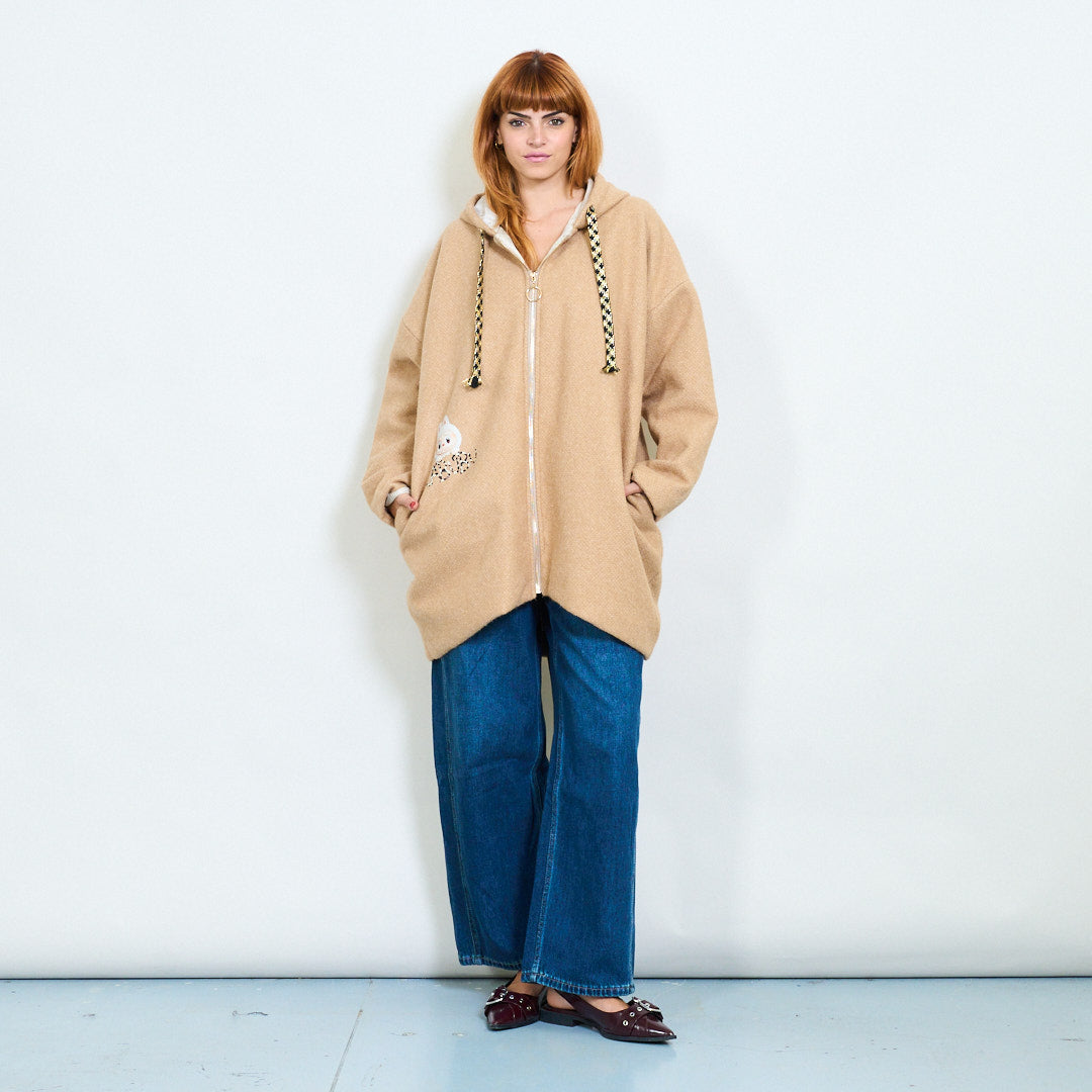 Huva zip-up tröja med tecknad lappdetalj grossist