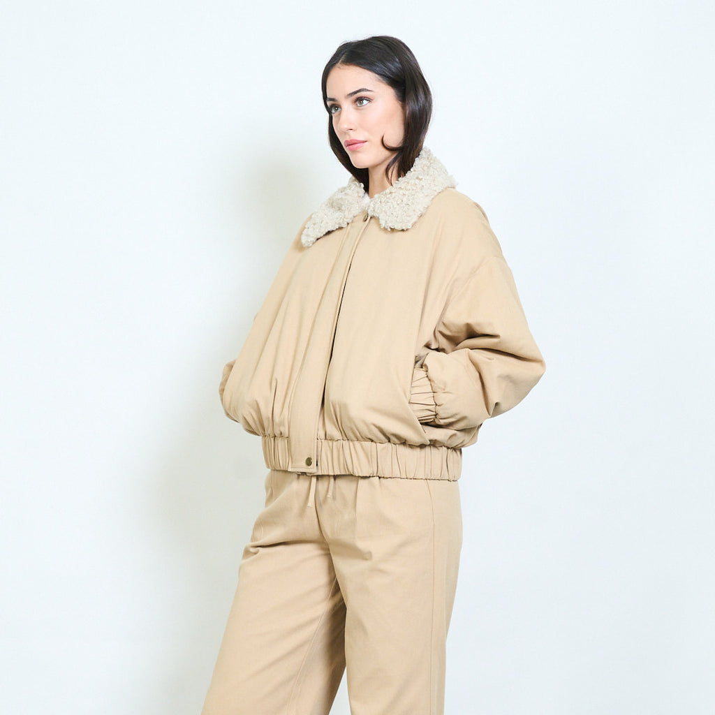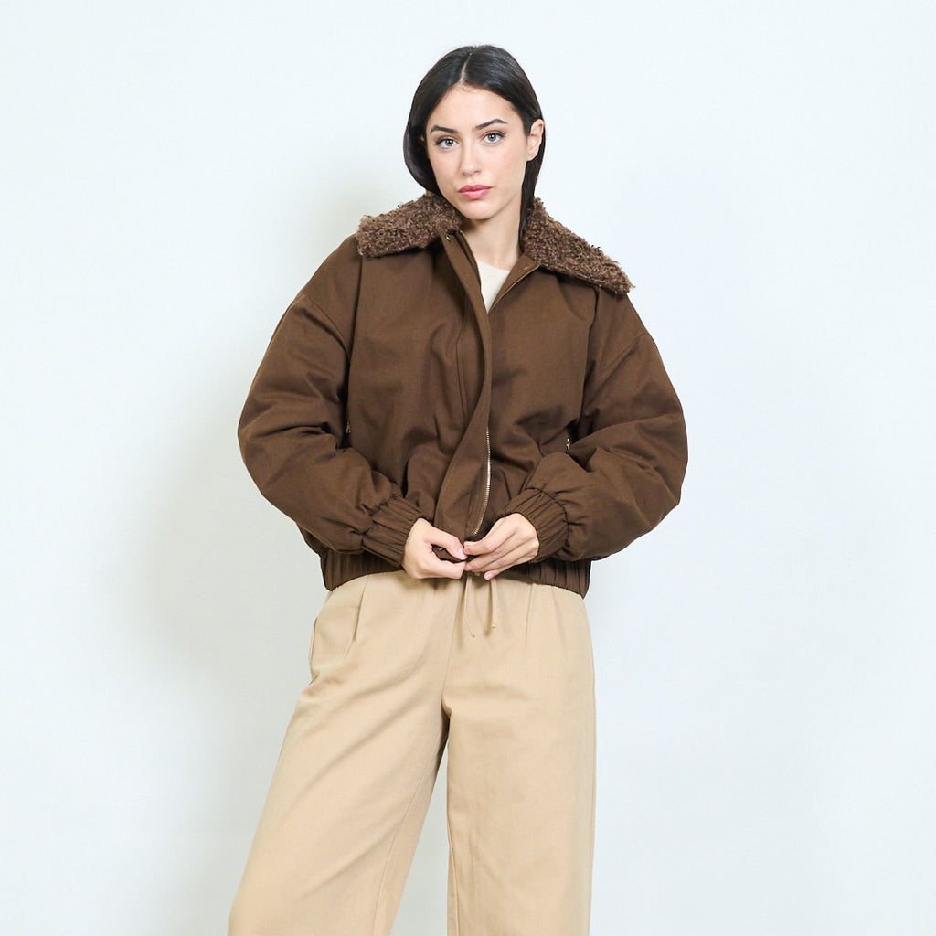 Lockig faux päls krage beskuren bombplan jacka grossist