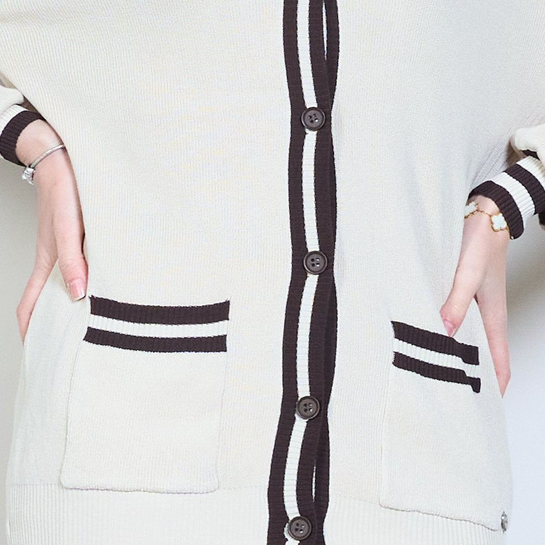 - Cardigan har fickor framtill och räfflad kontrastkant för en raffinerad finish