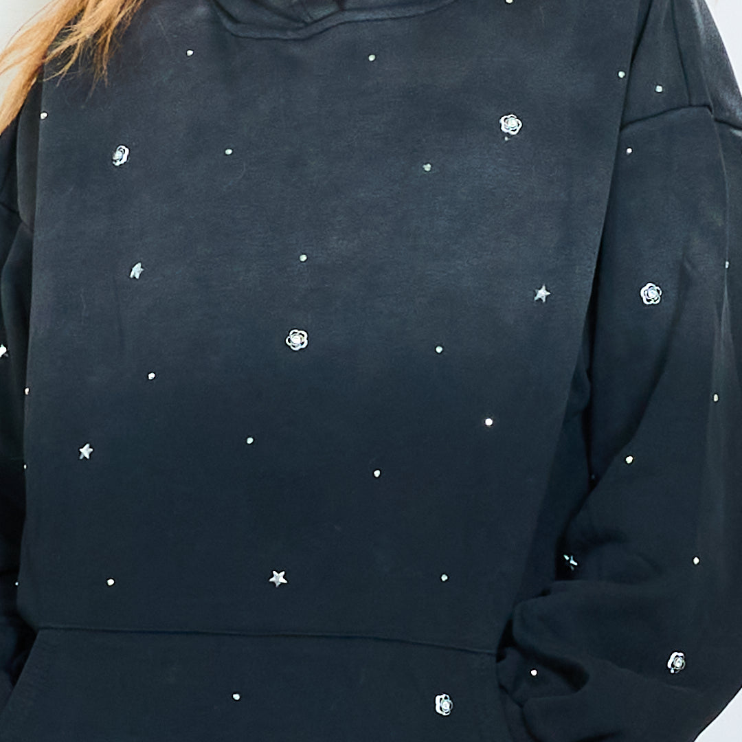 Stjärna utsmyckad överdimensionerad hoodie grossist