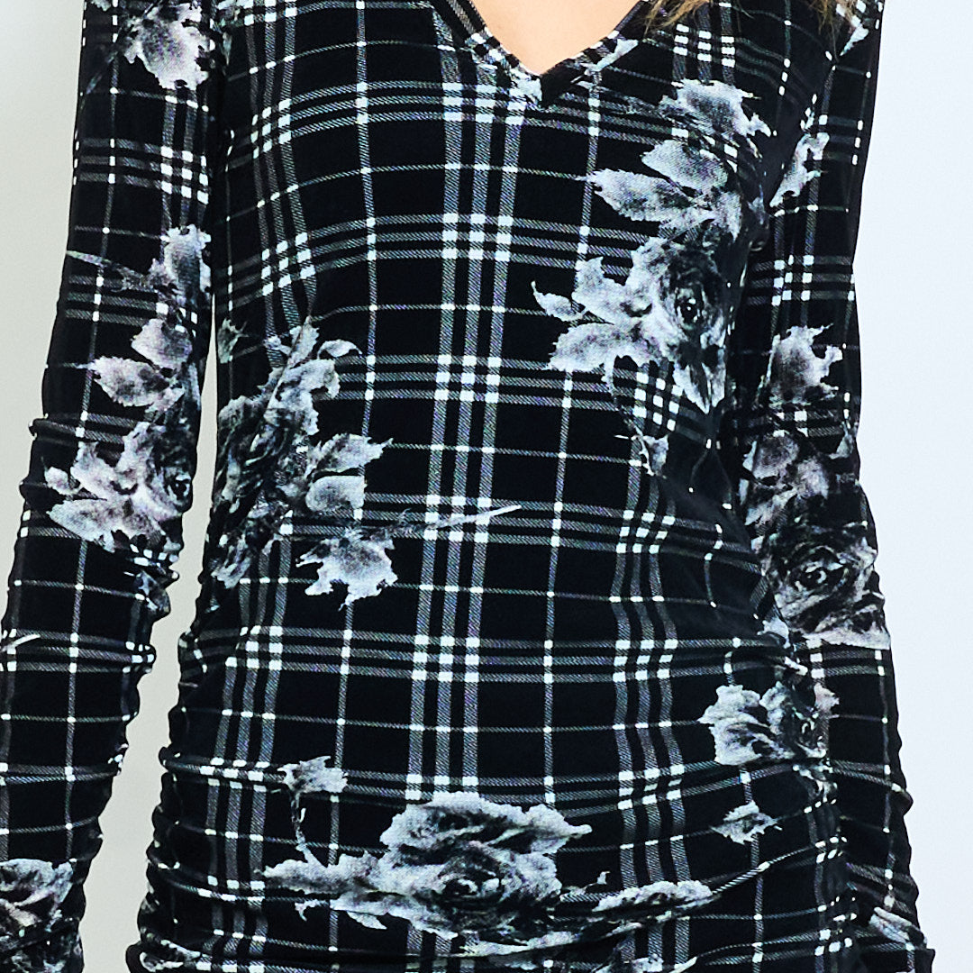 Plaid blommig grafisk tryckt ruched monterad klänning grossist