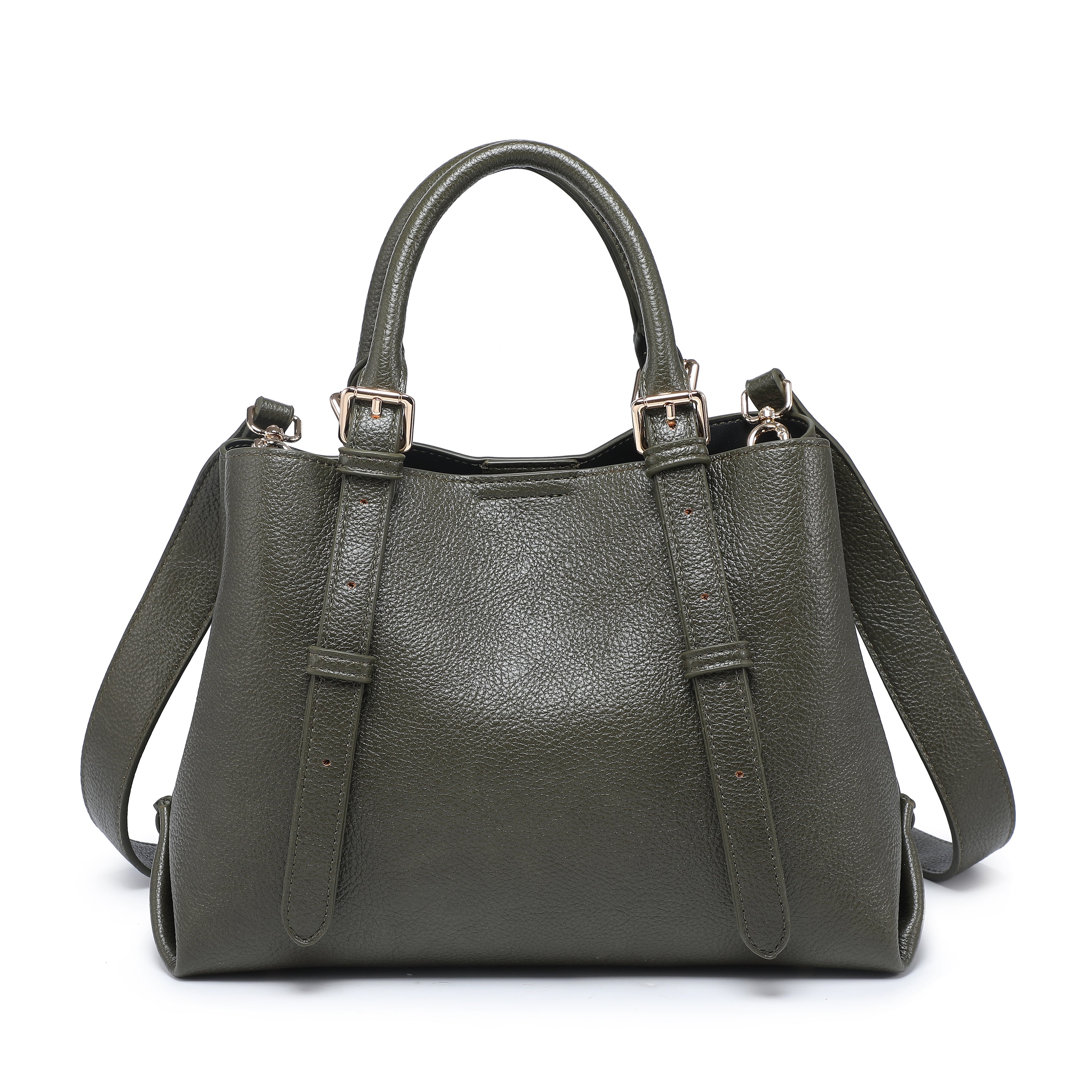 - Dubbla topphandtag med justerbara spänne accenter för extra detalj