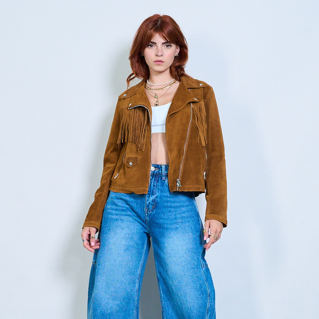 Western Fringe Biker Suede-Look Jacket Wholesale