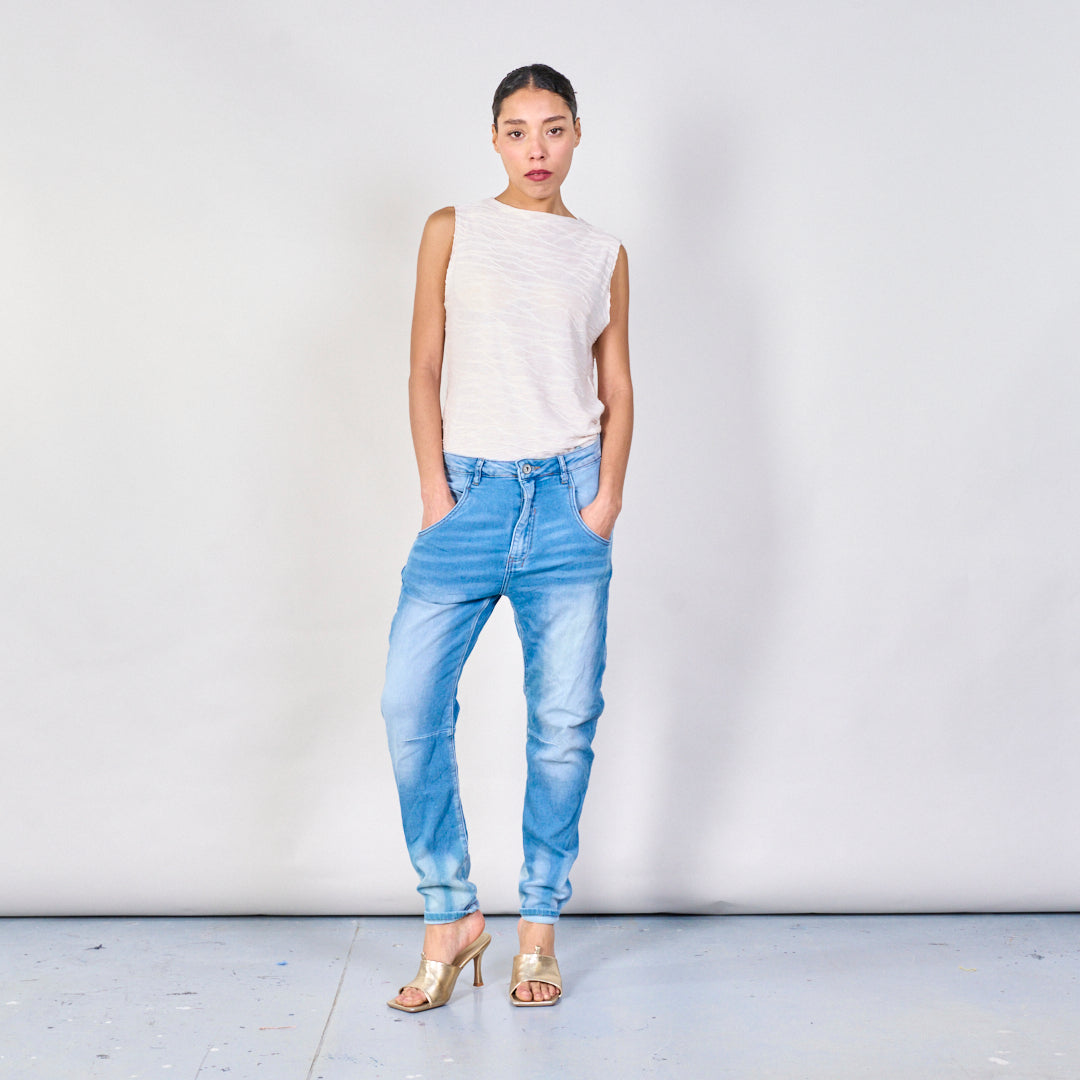 Avslappnad avsmalnande denim jeans grossist