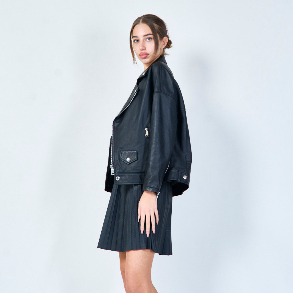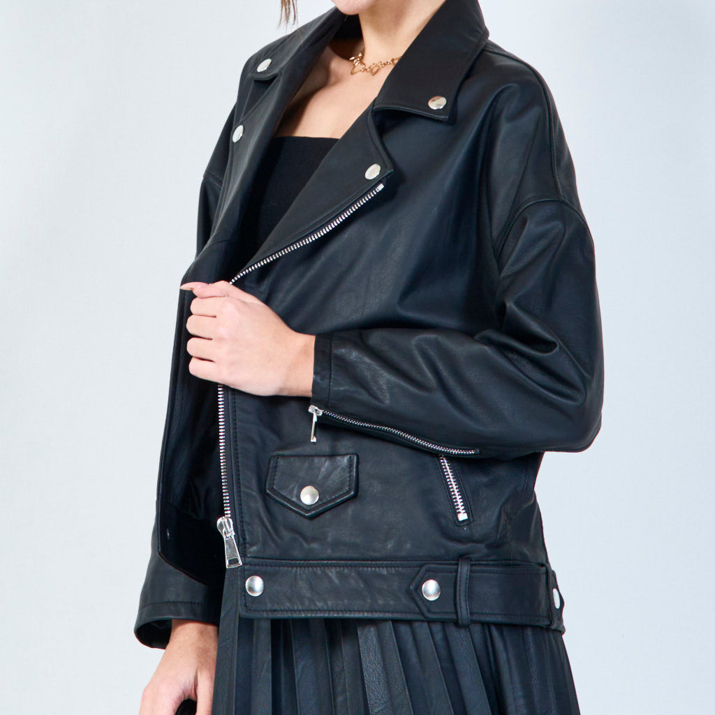 - Ikonisk beskuren moto -stil med vilda zip -accenter