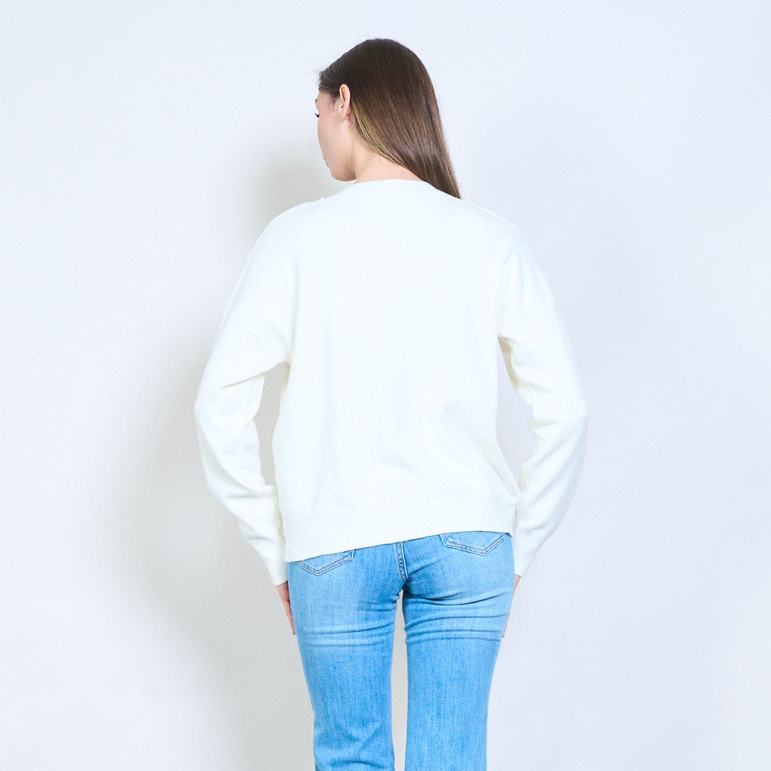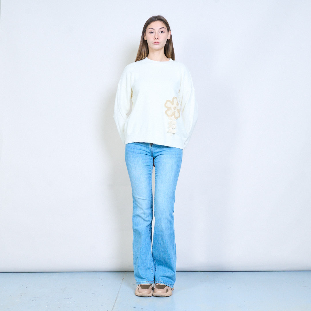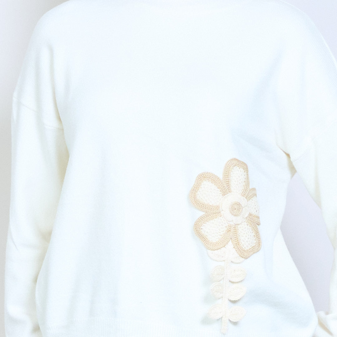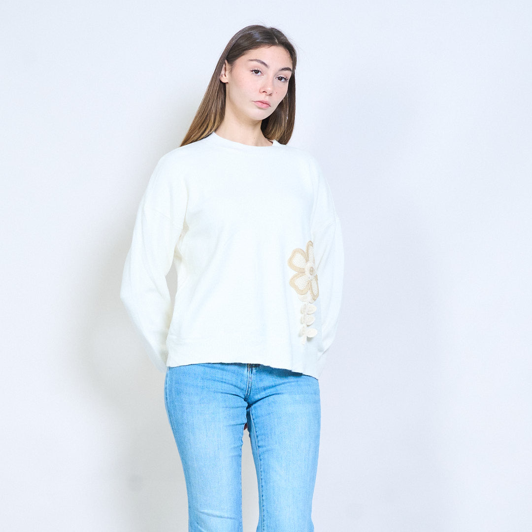 Blommig applikation sidodetalj avslappnad långärmad stickad tröja grossist