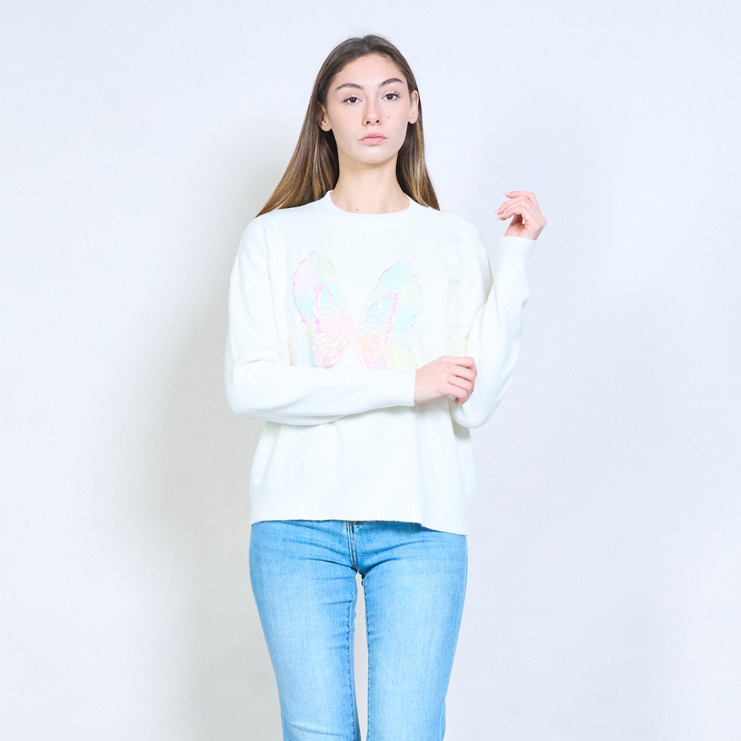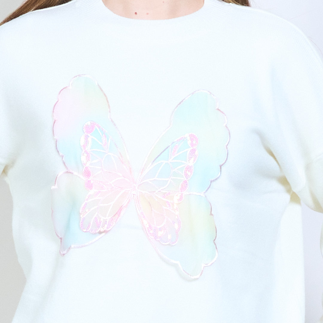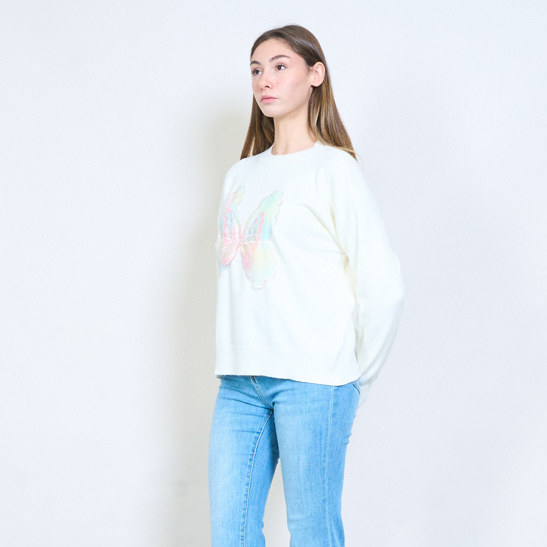 Butterfly grafisk soft touch långärmad stickad tröja grossist