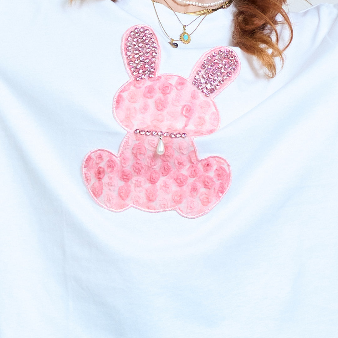 Crystal Bunny Appliqué överdimensionerad grafisk t-shirt grossist