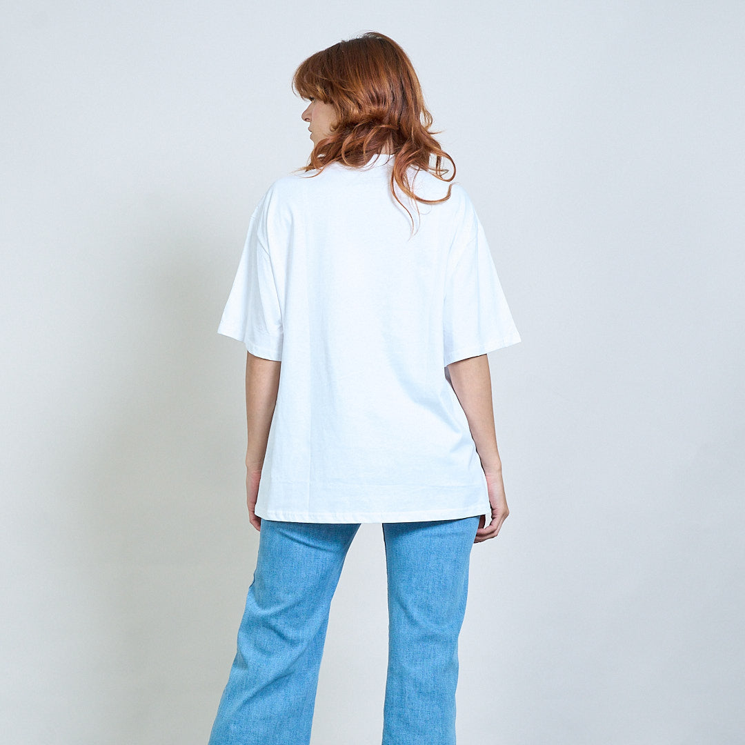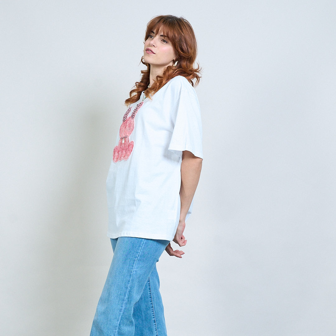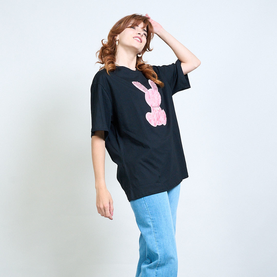 - Avslappnad-fit-t-shirt med stor främre kaninapplikationsdesign