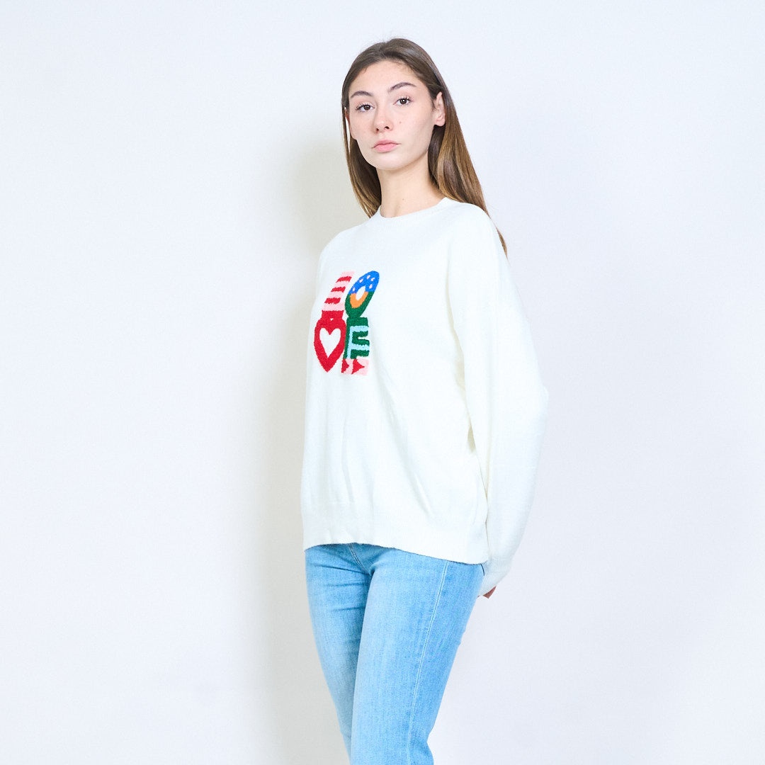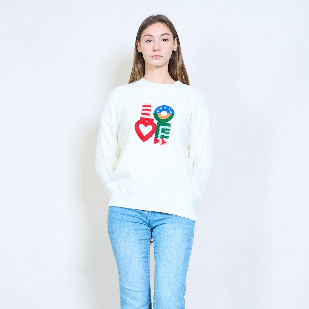 Grafiskt kärleksmotiv lekfull långärmad stickad tröja grossist
