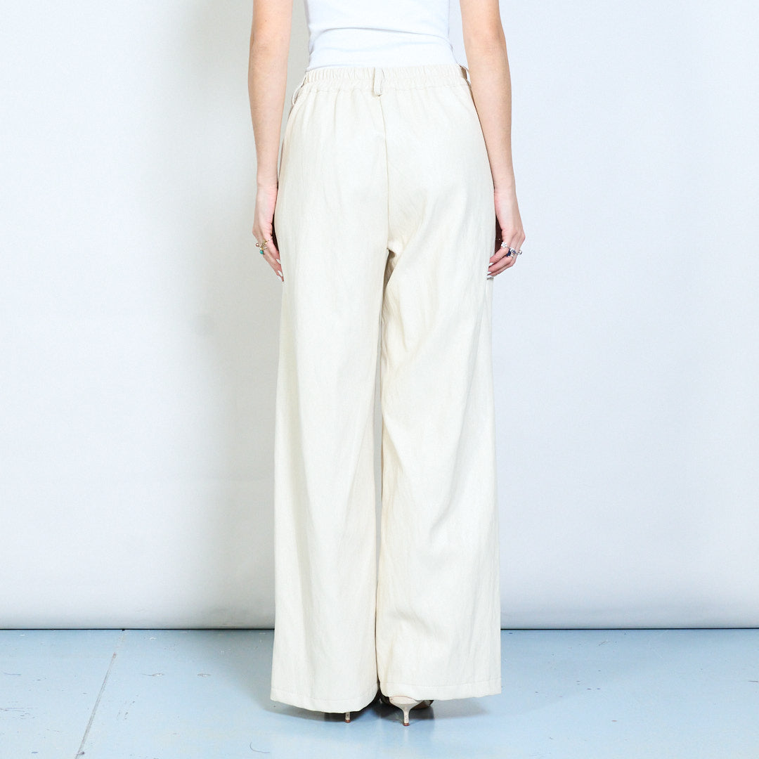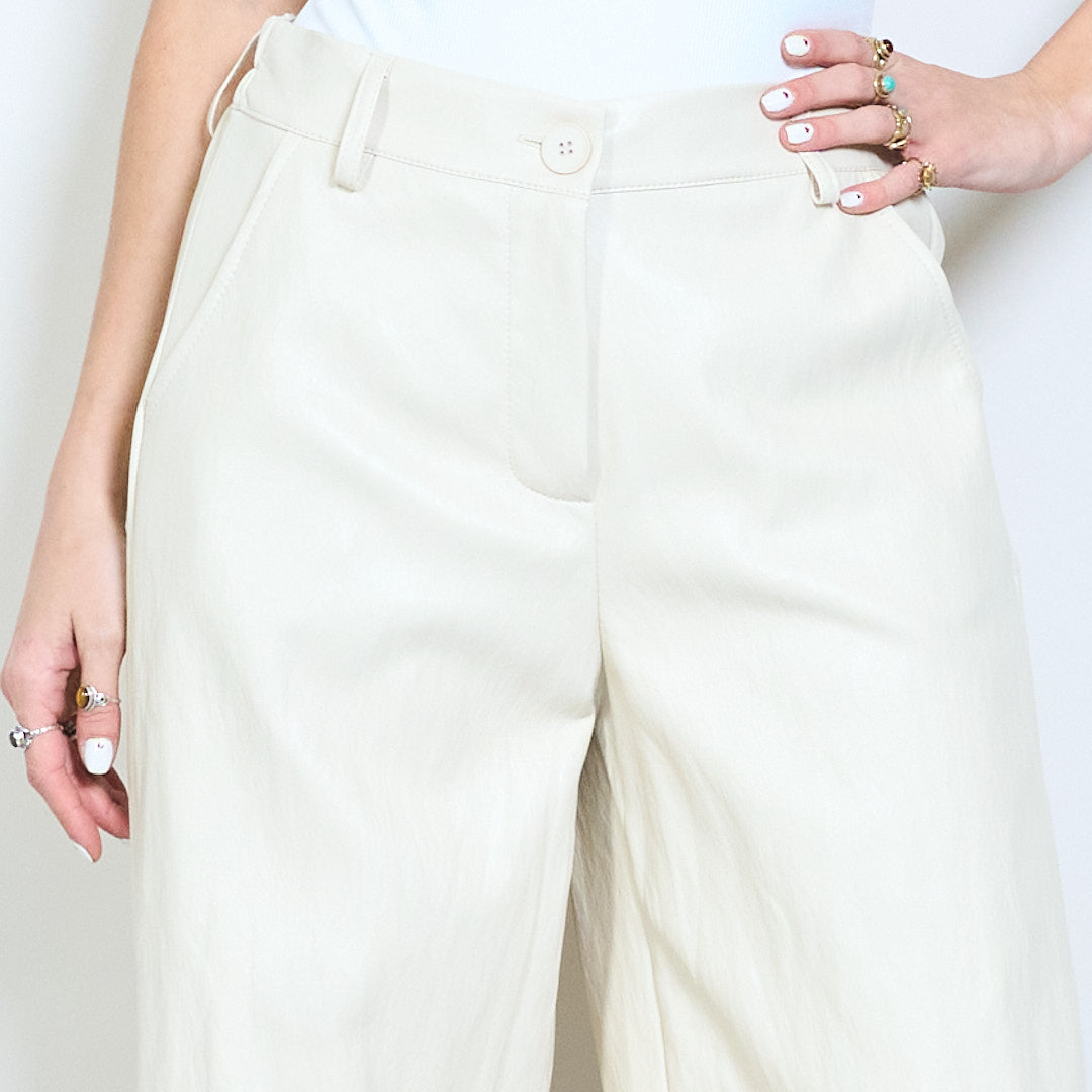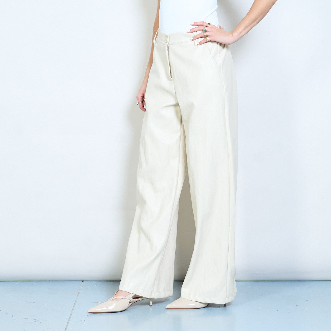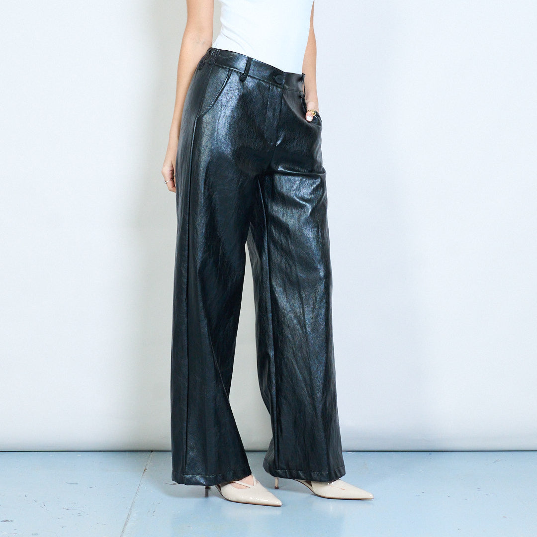 Grossistförsäljning av falska läderbyxor med vida ben med hög midja