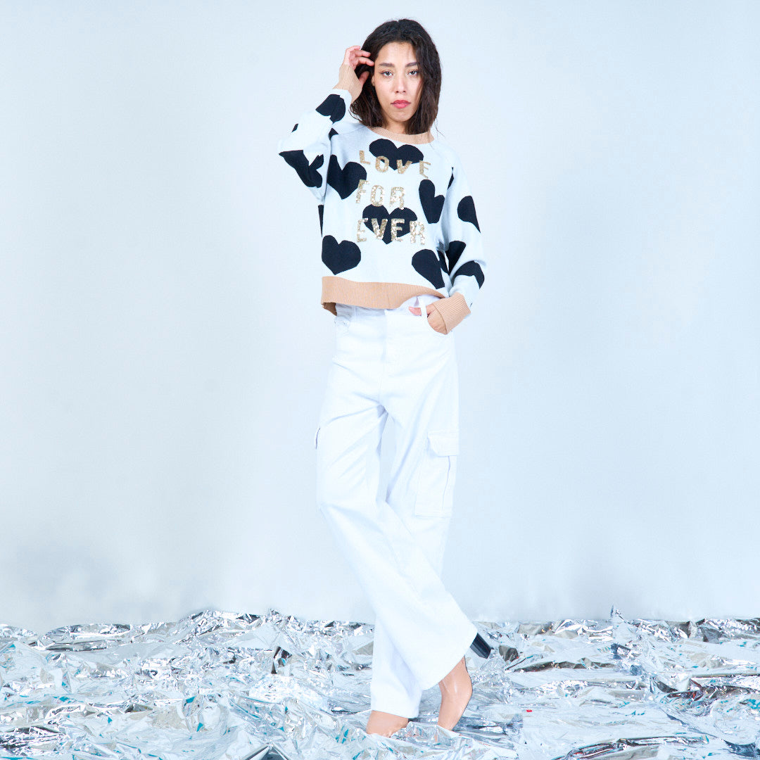 Hjärtmönstertröja med "kärlek för alltid" design grossist