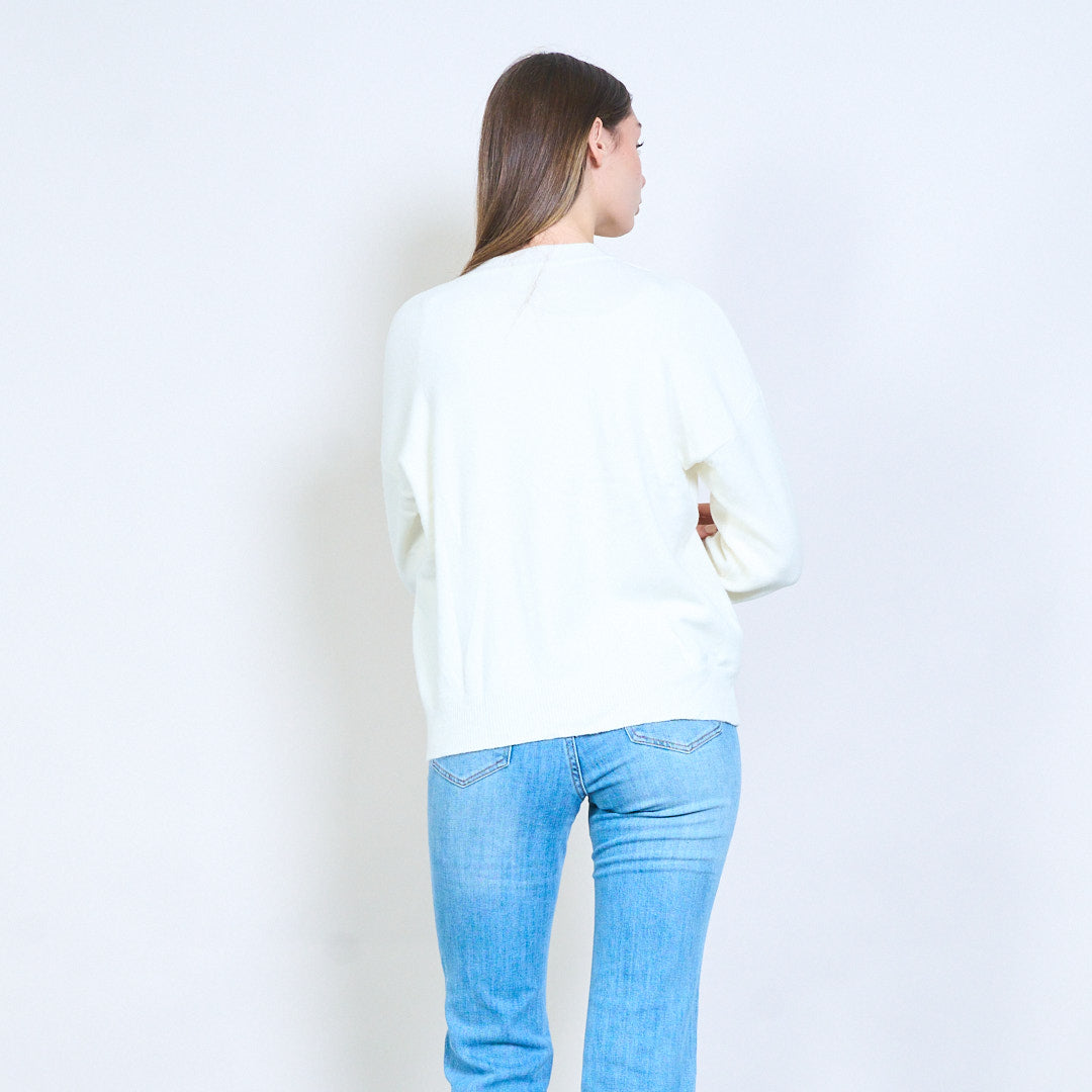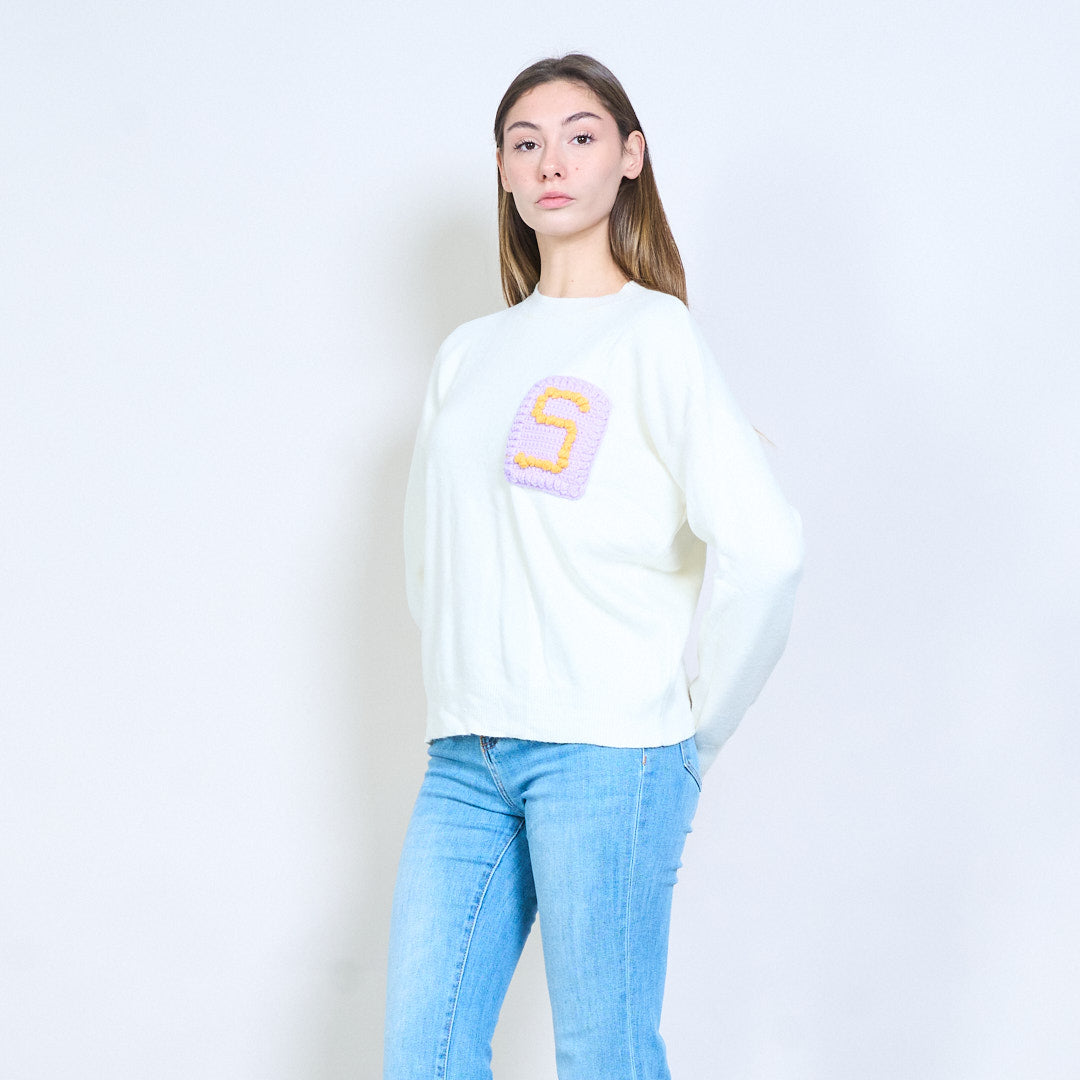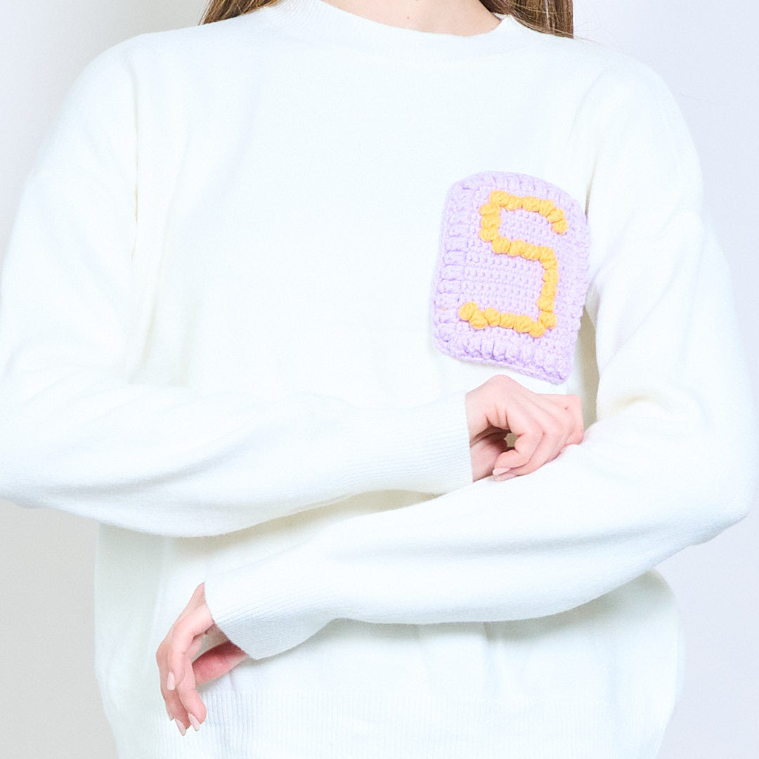 Letter patch texturerad applikation långärmad stickad tröja grossist