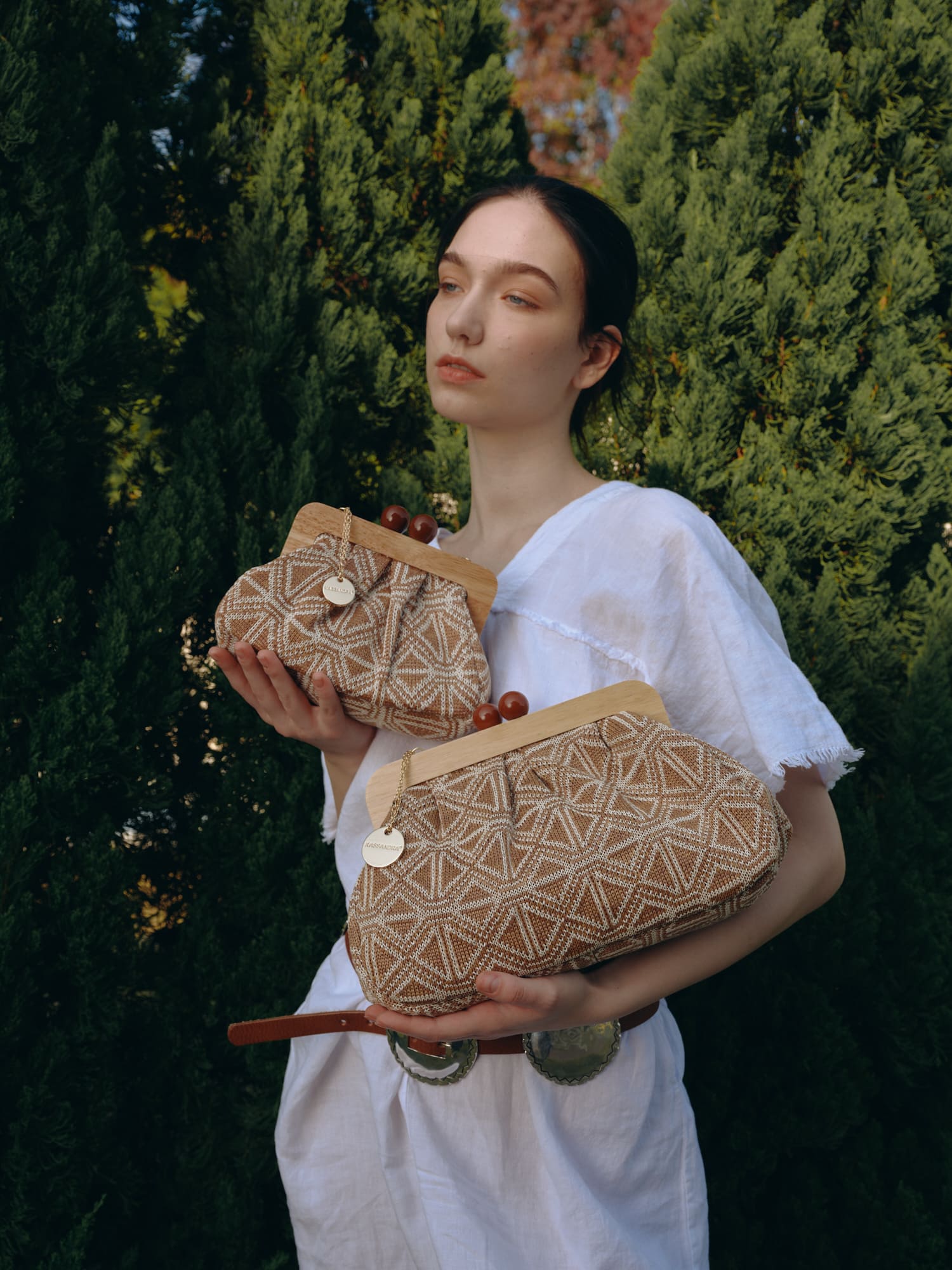 Mini geometrisk kopplingspåse med träklås ram grossist