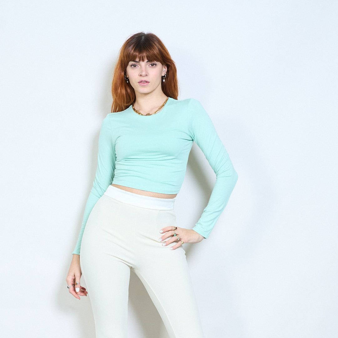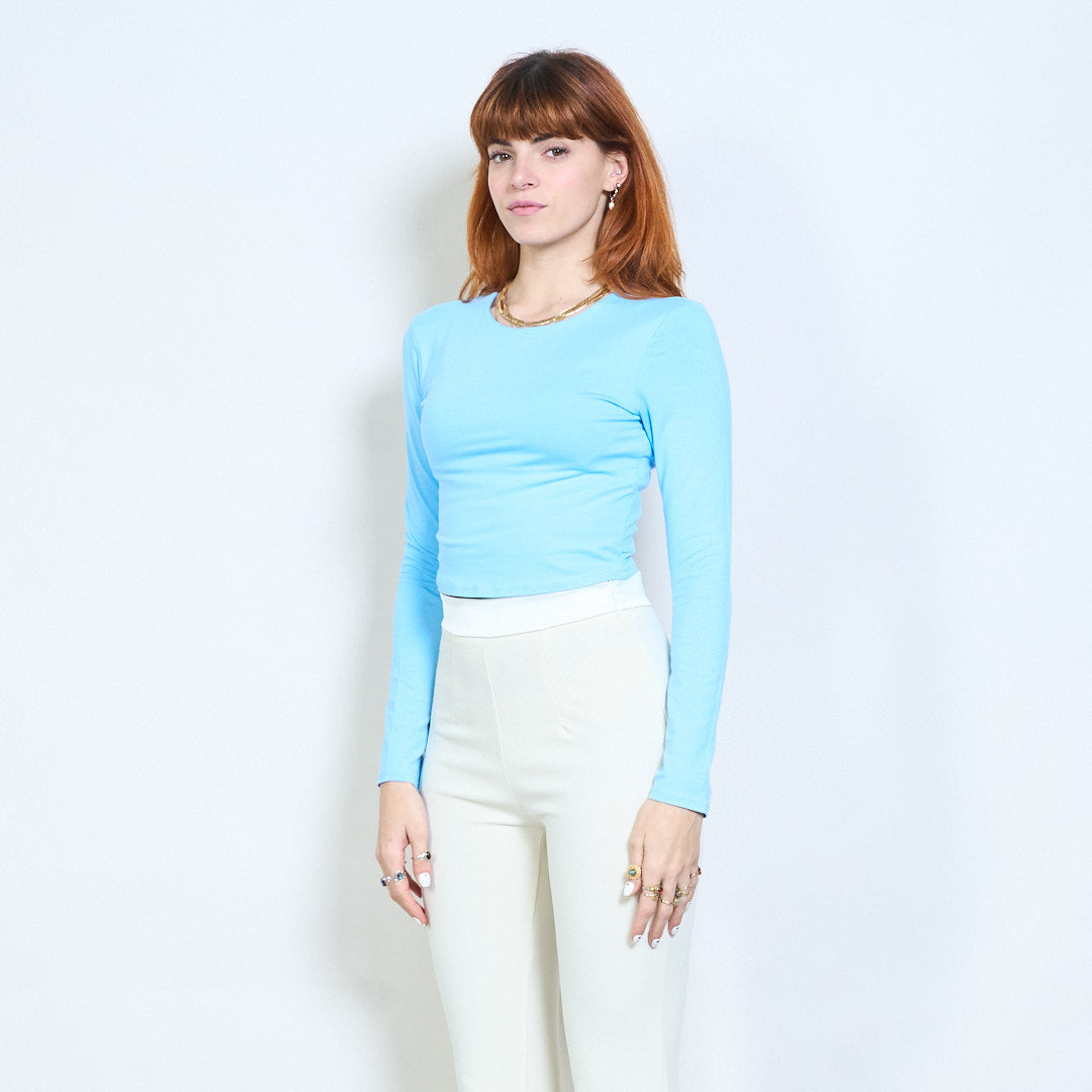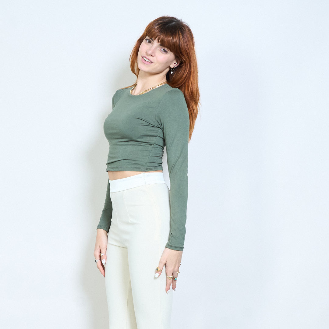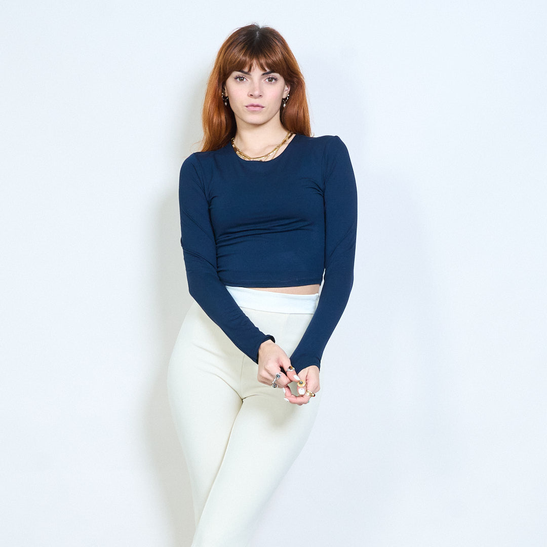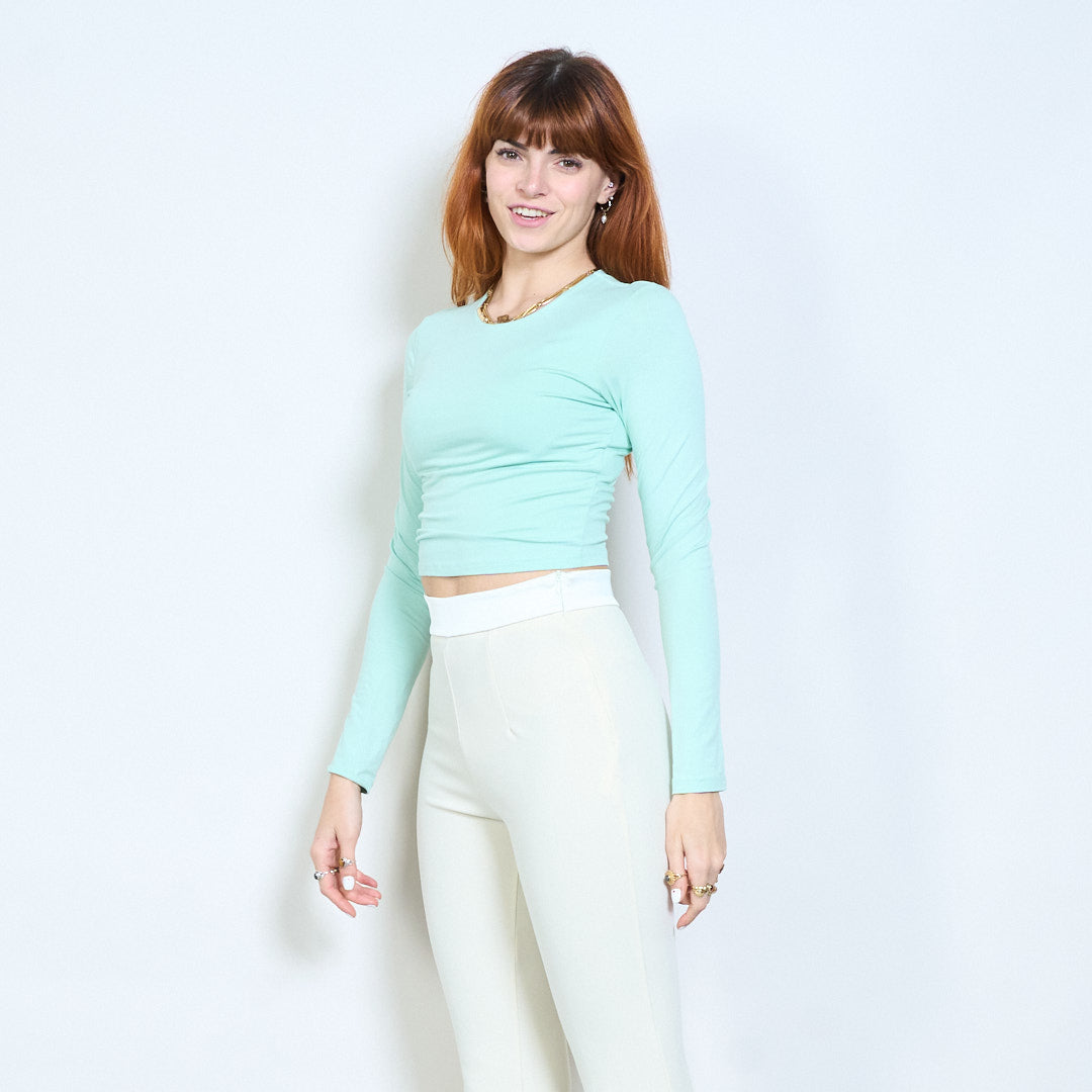 Minimal crew neck monterad långärmad cropped top grossist